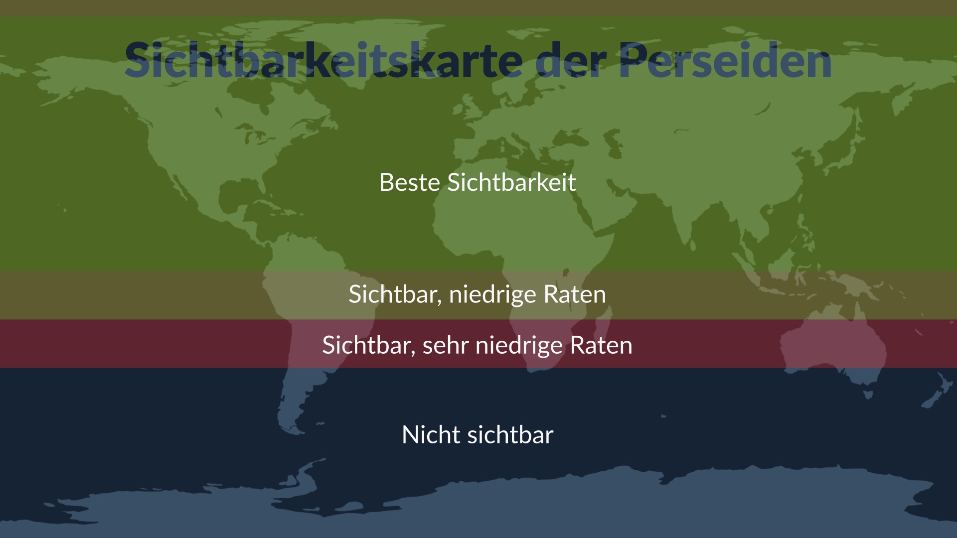 Die Perseiden können am besten in mittleren nördlichen Breiten beobachtet werden. Dort steigt der Radiant des Meteorschauers gegen 22:30 Uhr Ortszeit hoch in den Himmel. Leider kann der Perseiden-Meteorschauer von den meisten Teilen der Südhalbkugel aus nicht gut beobachtet werden.
