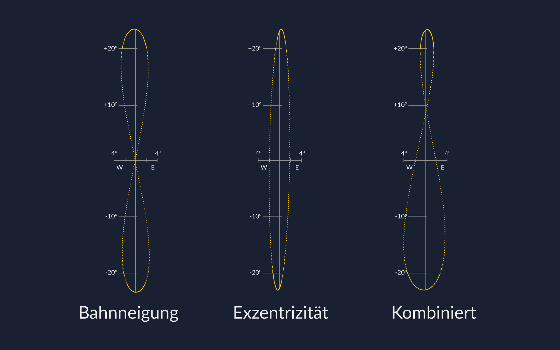 Das Analemma erscheint wegen der Neigung der Erdachse gegenüber der Erdbahnebene und der elliptischen Umlaufbahn als leicht verlängerte Acht. So funktioniert es.