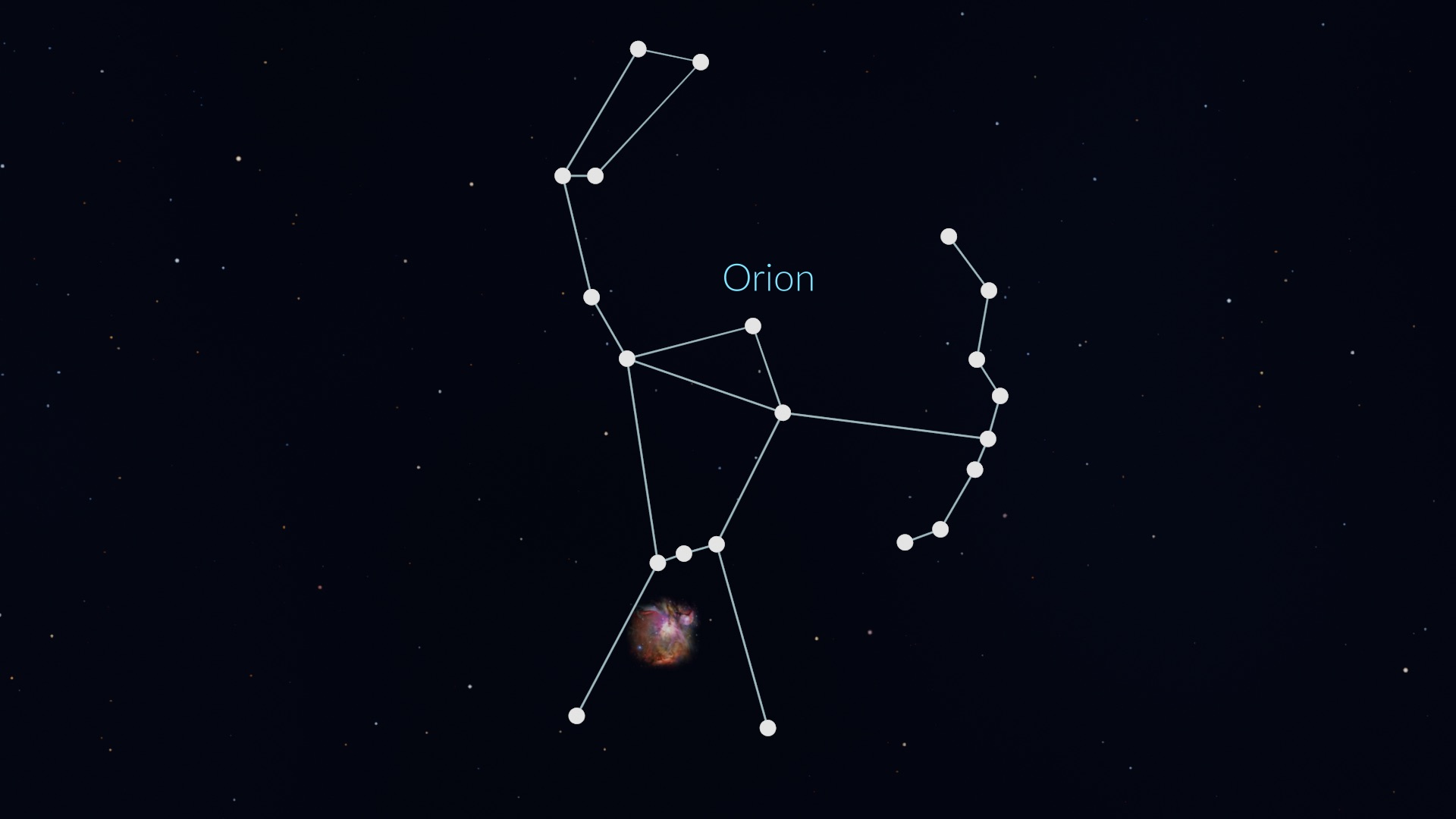 - Beobachtungstipps: Der Orionnebel ist so hell, dass man ihn mit bloßem Auge als verschwommenen „Stern“ im Asterismus Schwert des Orion erkennen kann. In einem 7x50 oder 10x50 Fernglas erscheint er als große, helle Lichtwolke. Benutzen Sie indirektes Sehen, um mehr Details im Nebel zu sehen.