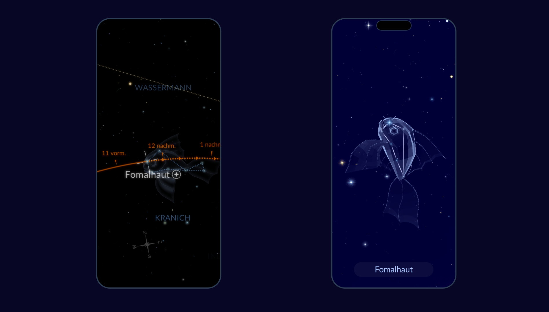 Der Nachthimmel im Oktober ist voller Wunder, und wir helfen Ihnen mit diesem praktischen Sternenführer, die schönsten davon zu entdecken! Wir konzentrieren uns zwar auf einige der hellsten Sterne und Sternbilder, aber vergessen Sie nicht, dass es jede Nacht noch viel mehr zu entdecken gibt. Nutzen Sie die Heute Sichtbar Funktion (die mit dem Teleskop-Symbol) in der Sky Tonight-App, um genau zu sehen, was sich über Ihnen befindet, einschließlich Sterne, Planeten und sogar Deep-Sky-Objekte. Lassen Sie uns nun einen Blick auf die Sterne und Sternbilder werfen, die im Oktober in beiden Hemisphären zu sehen sind.