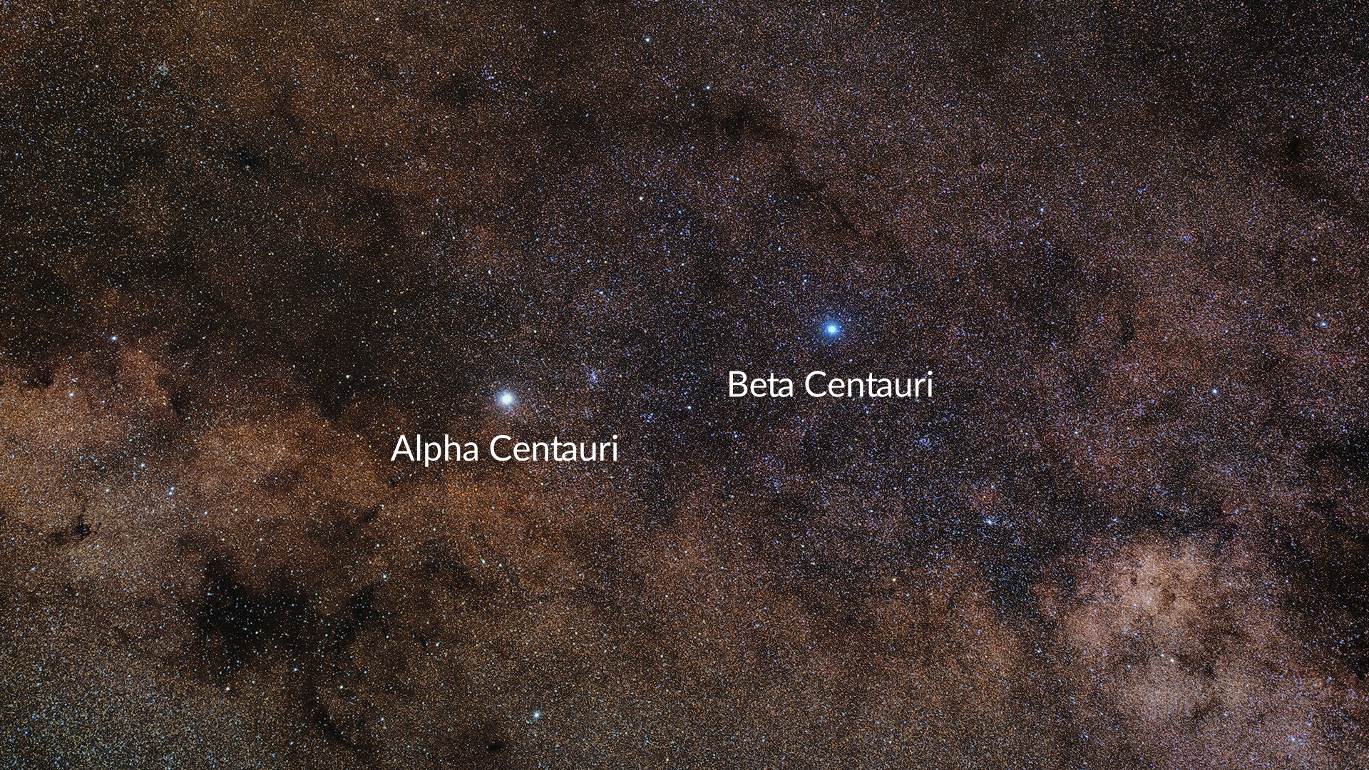 Alpha Centauri und Beta Centauri sind die hellsten Sterne des Sternbilds und leuchten nahe beim Kreuz des Südens. Sobald Sie sie entdecken, haben Sie bereits den berühmtesten Teil des Sternbilds gefunden – sehen wir sie uns jetzt genauer an.