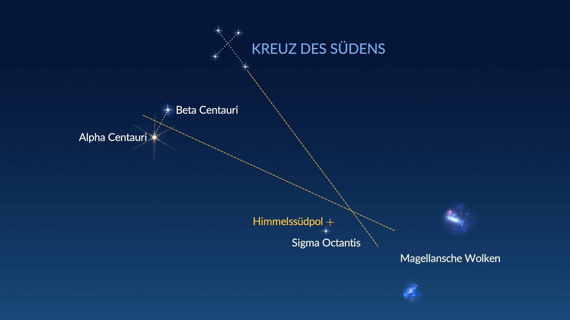 Es ist ein eingebauter Himmelskompass. Die beiden hellen Sterne Alpha und Beta Centauri, auch als Zeigersterne bekannt, können zusammen mit dem Kreuz des Südens helfen, die Richtung des südlichen Himmelspols zu bestimmen.