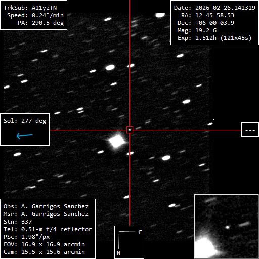 - Erstens wurde C/2026 C1 in großer Entfernung – jenseits der Saturnbahn – entdeckt, während er noch mit einer Helligkeit von etwa 19 mag leuchtete, was darauf hindeutet, dass es sich um einen physikalisch großen Kometen handeln könnte.