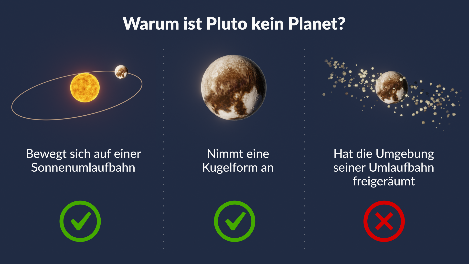 Gemäß der aktualisierten Definition der IAU gilt ein Himmelskörper als Planet, wenn er die folgenden drei Kriterien erfüllt: