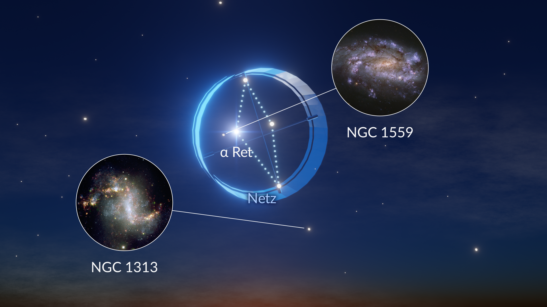 - Beste Deep-Sky-Objekte: NGC 1313 (10,0 mag), NGC 1559 (10,5 mag)
