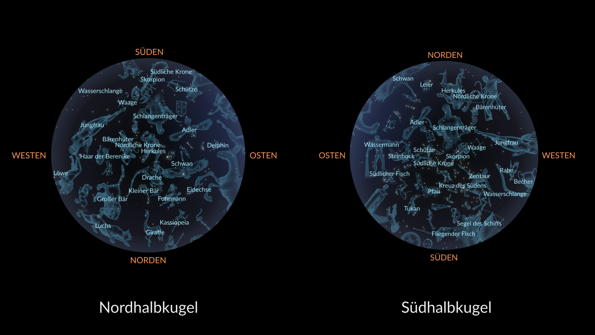 Auf der Südhalbkugel ist dies eine hervorragende Zeit, um Bärenhüter, Nördliche Krone, Herkules, Leier und Adler am Nordhimmel zu beobachten, während Südliche Krone und Südlicher Fisch höher über dem Horizont sichtbar sind.