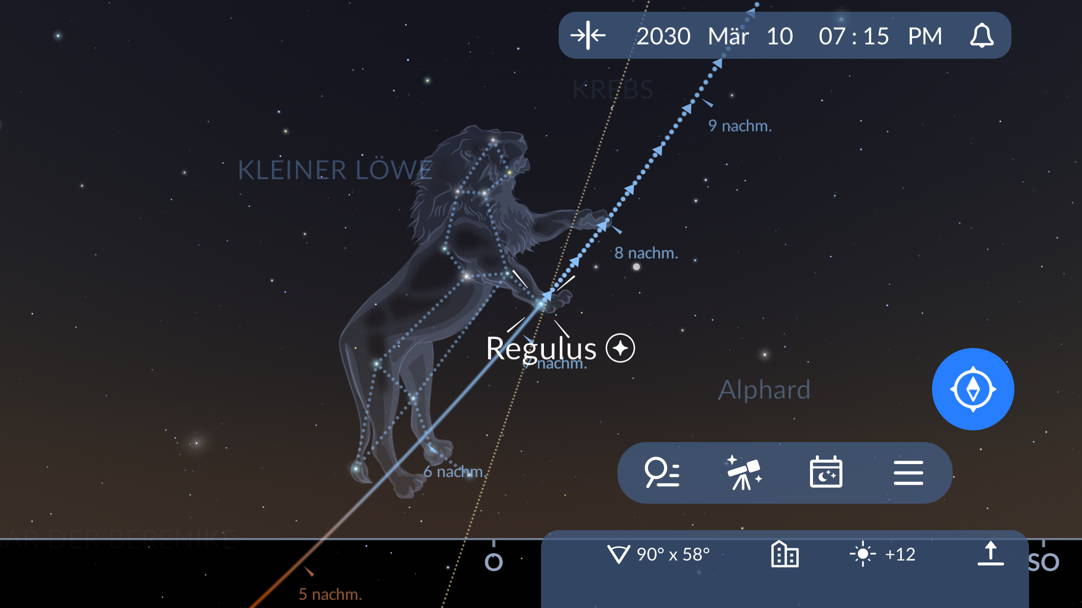 Den Nachthimmel zu erkunden ist spannend und kann mit einer echten Astronomie-App wie Sky Tonight ganz einfach sein. Mit dieser kostenlosen App kann man Regulus in ein paar einfachen Schritten finden: