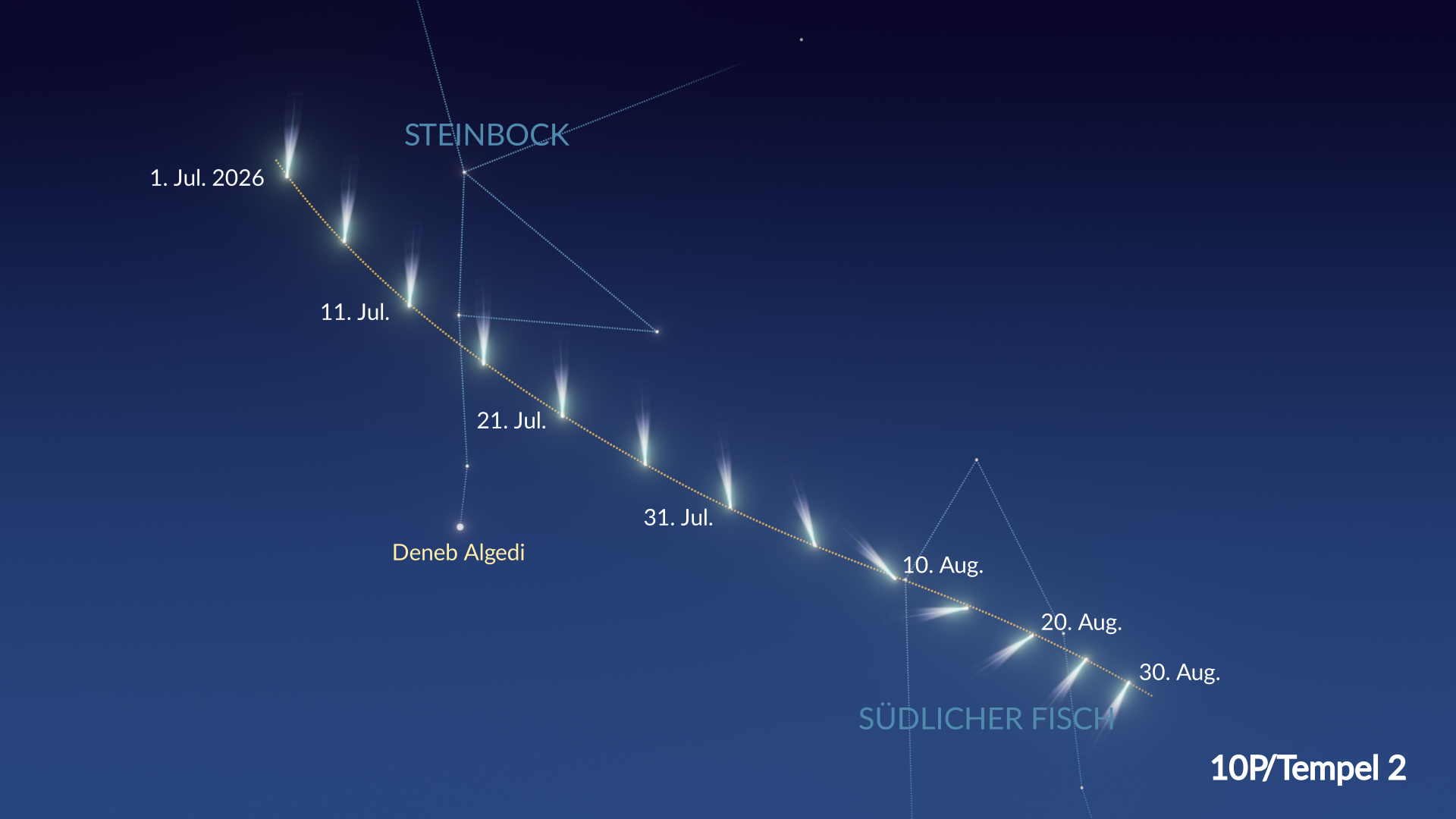 - Komet Anfang Juli – Ende August 2026: 10P/Tempel 2