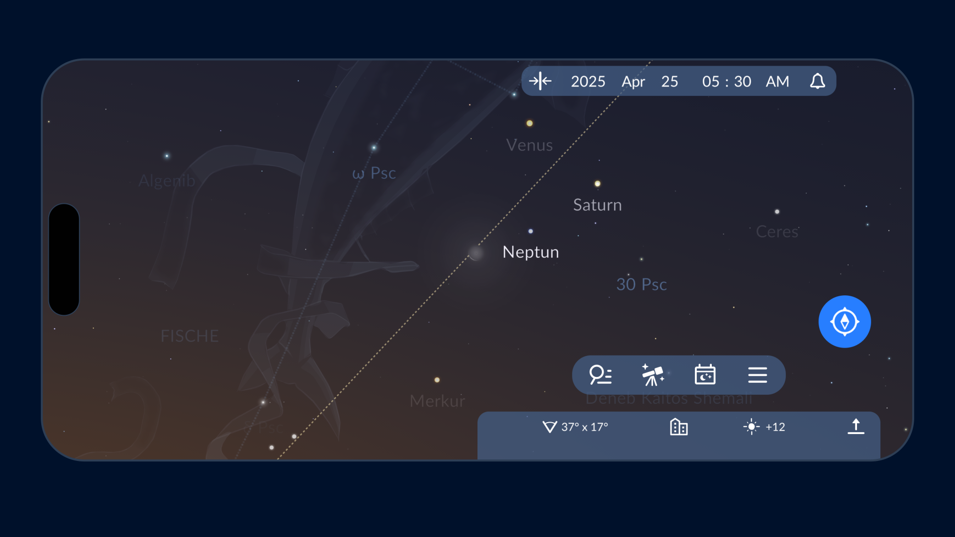 Ende April 2025 ist die beste Zeit für Venusbeobachtungen! Mit einer beeindruckenden Helligkeit von -4,8 mag erhellt der Planet neben Mond, Saturn, Merkur und Neptun den Morgenhimmel. Halten Sie kurz vor Sonnenaufgang Ausschau nach der Venus – sie erscheint als heller „Morgenstern“ am östlichen Horizont. Mit der kostenlosen Astronomie-App Star Walk 2 können Sie die Venus und andere Objekte in ihrer Umgebung leichter finden.