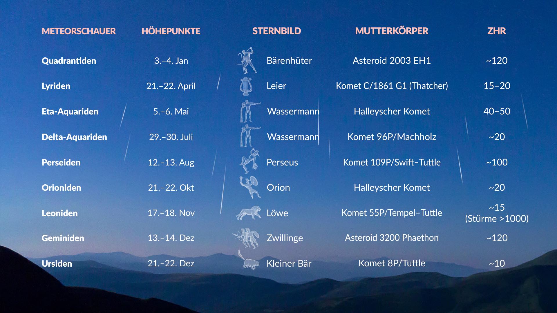 - Jährlicher Meteorschauer-Kalender