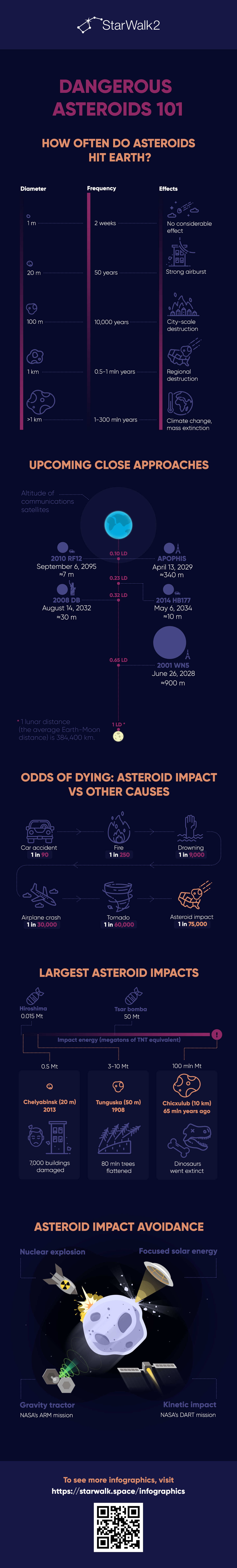Many people are wondering what would happen if an asteroid hit Earth. Well, small asteroids hit Earth every two weeks, and nothing special happens. But what if it was a giant asteroid? Use our infographic to learn how asteroids impact Earth depending on their size and what can be done to avoid asteroid collision. Don't hesitate to share this infographic with your friends if you like it! It’s also available in our Instagram account via the #infographics_StarWalk hashtag. Follow us on Instagram for more stargazing info!