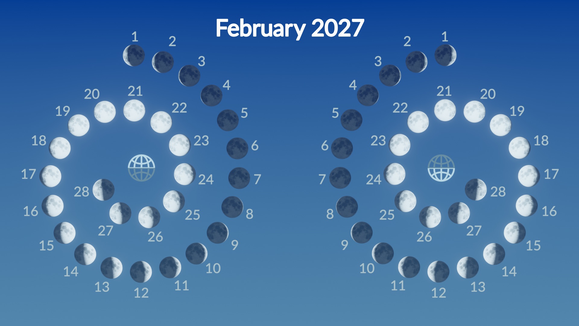 - New Moon: Feb 6, 2027 — 15:56 UTC (annular solar eclipse)