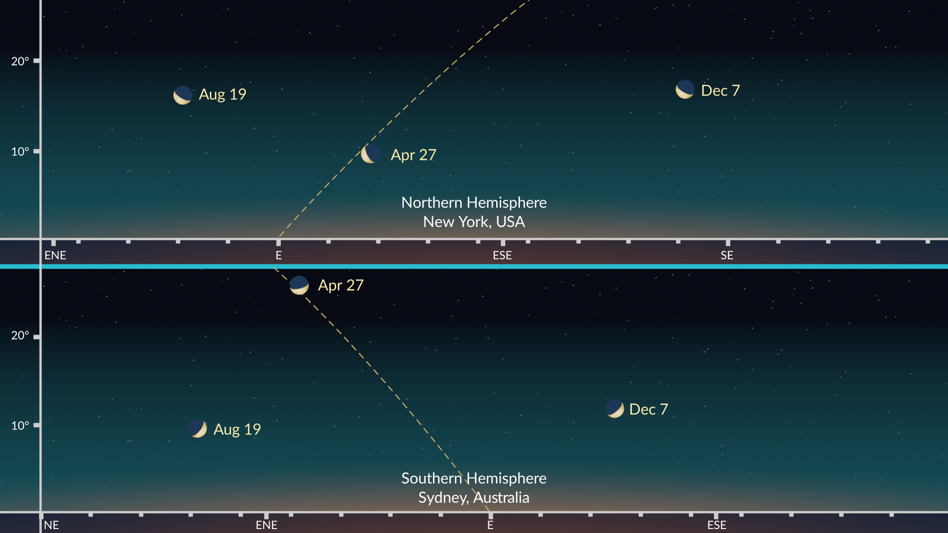Although the greatest elongation always marks the planet’s prime viewing window, not all elongations are equal. This one strongly favors the Northern Hemisphere thanks to the steep angle of the ecliptic to the horizon at this time of the year. It’s the best morning apparition of Mercury for northern observers in 2025!