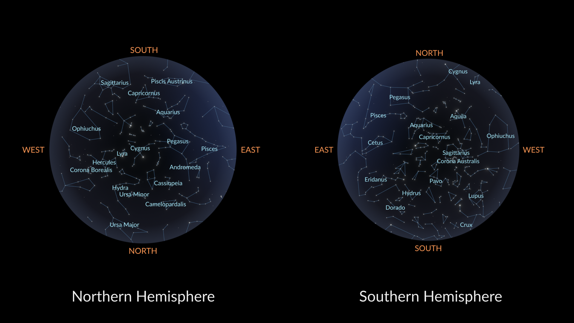 In September, both hemispheres enjoy a mix of notable constellations. Look for the constellations of the zodiac family along the ecliptic: Pisces, Aquarius, Capricornus, and Sagittarius are well-seen from both hemispheres, while Scorpius remains a highlight for the Southern Hemisphere. The “13th zodiac constellation,” Ophiuchus, is also easy to spot from both sides of the globe. Beyond the zodiac, skywatchers can still enjoy the Summer Triangle asterism (Aquila, Cygnus, Lyra), as well as Pegasus and Andromeda rising higher through the night. There is also a chance to glimpse Piscis Austrinus, a southern constellation marked by its bright star Fomalhaut, glowing low in the southern sky of the Northern Hemisphere.