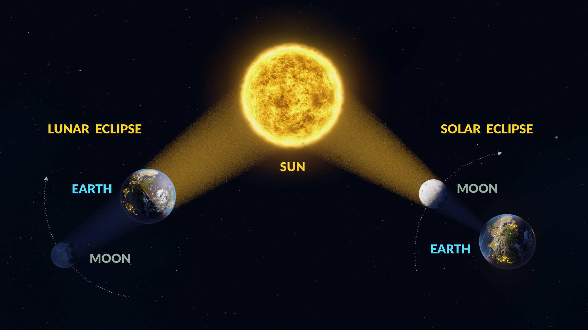 - Lunar eclipses occur only at a Full Moon, while solar eclipses happen only at a New Moon.
