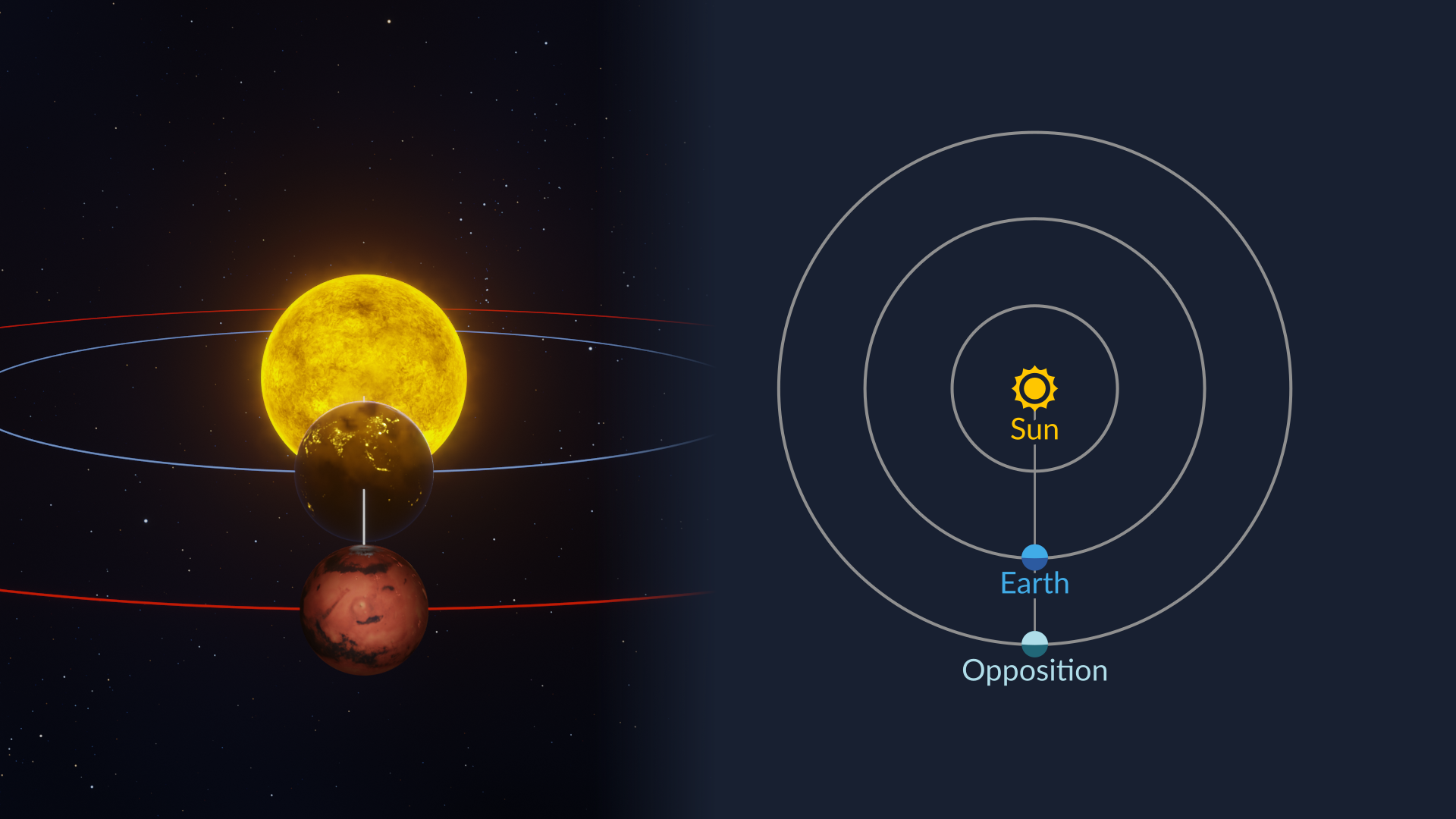 Opposition is a celestial alignment where the object has an elongation of 180 degrees, which is the greatest elongation for the superior planets. During opposition, the object and the Sun lie on opposite sides of the Earth, so the object is fully illuminated by sunlight and visible throughout the night. Opposition is considered to be the best time for observing a celestial body. In the dedicated article, we have a list of celestial bodies — planets, dwarf planets, and asteroids — that will reach opposition soon.