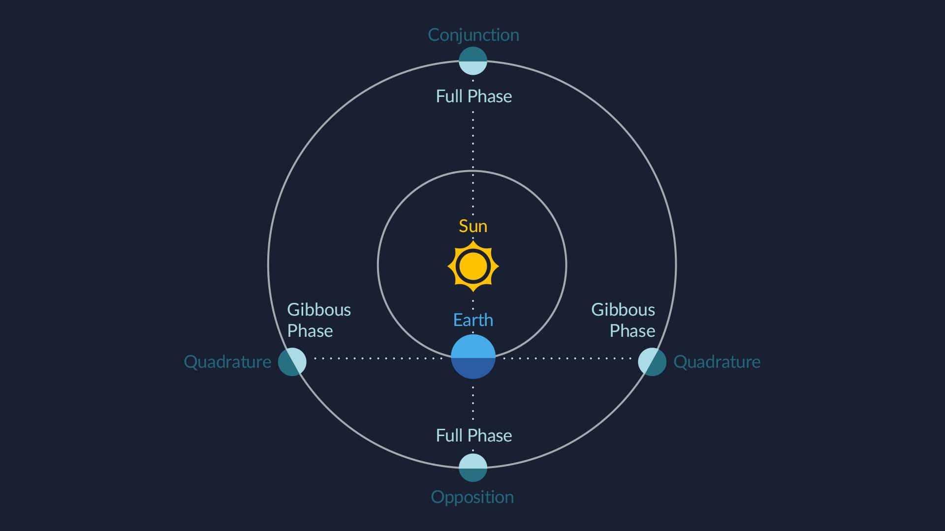 Superior planets do not display a full range of phases, but only subtle transitions between gibbous and full phases. They appear fully illuminated during oppositions, which is the best time to observe them.