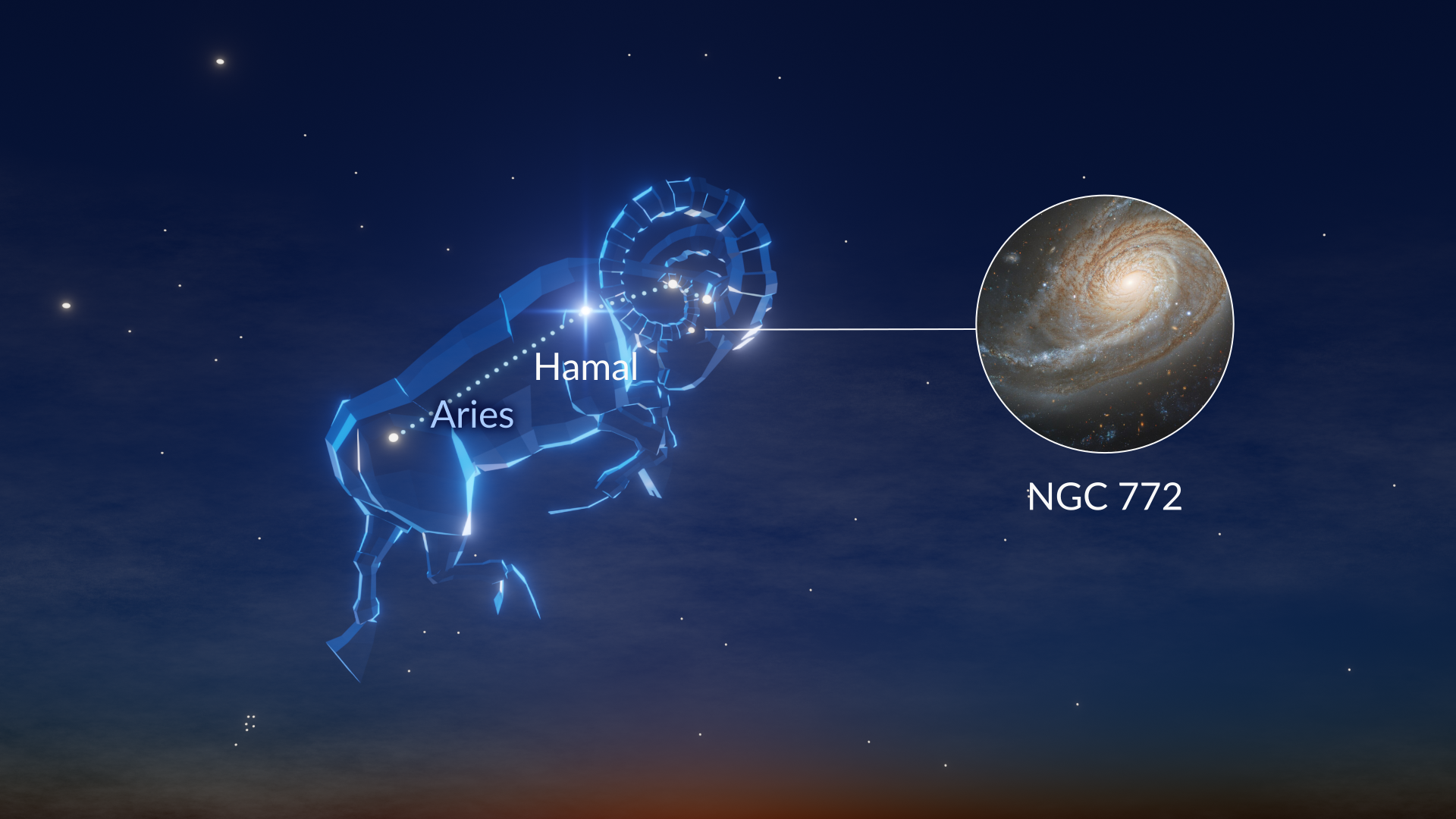 La constelación Aries no es especialmente llamativa. Es la undécima más pequeña de las 12 constelaciones del zodiaco, y sus estrellas son solo moderadamente brillantes. Como no es muy prominente, necesitarás un cielo oscuro y sin Luna para distinguirla con facilidad. En buenas condiciones, las tres estrellas que forman la cabeza de Aries —Hamal, Sheratan y Mesartim— destacan mucho más claramente, casi como si alguien hubiera subido su brillo. Con un pequeño telescopio, también puedes comprobar que Mesartim es una estrella doble.