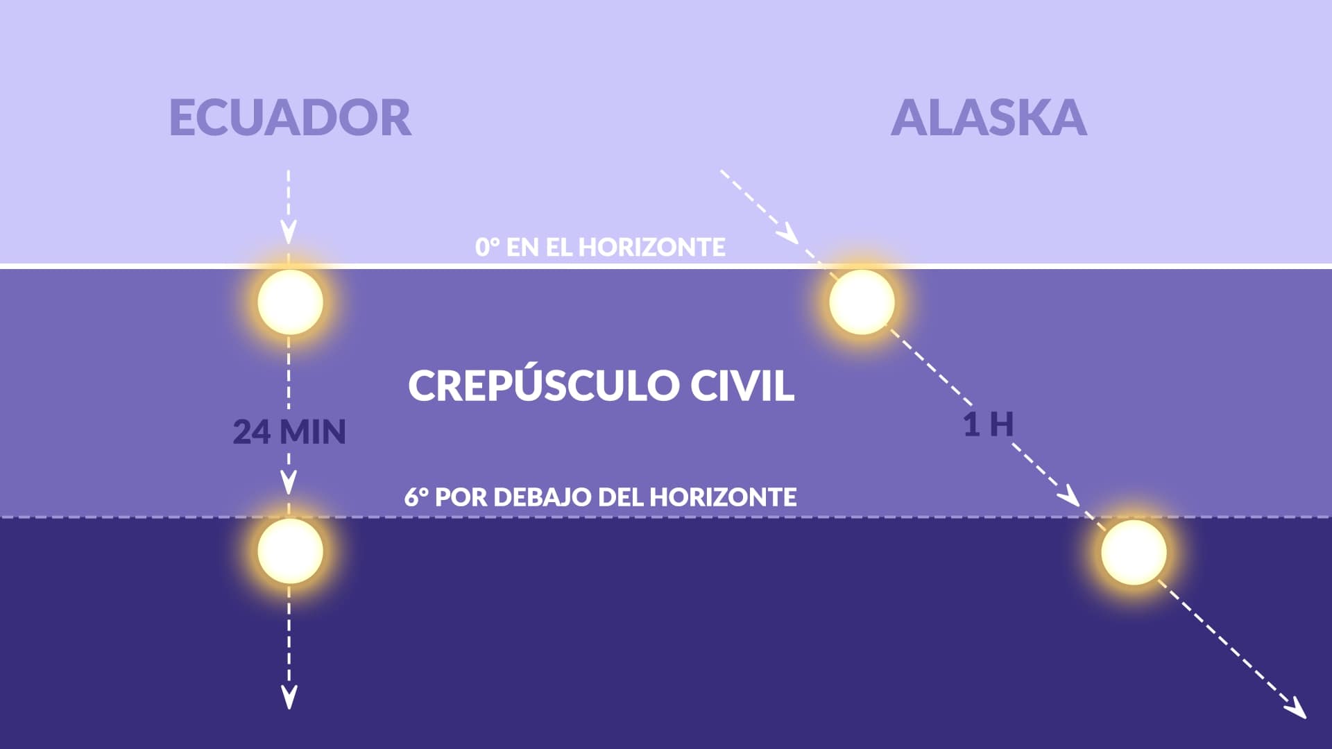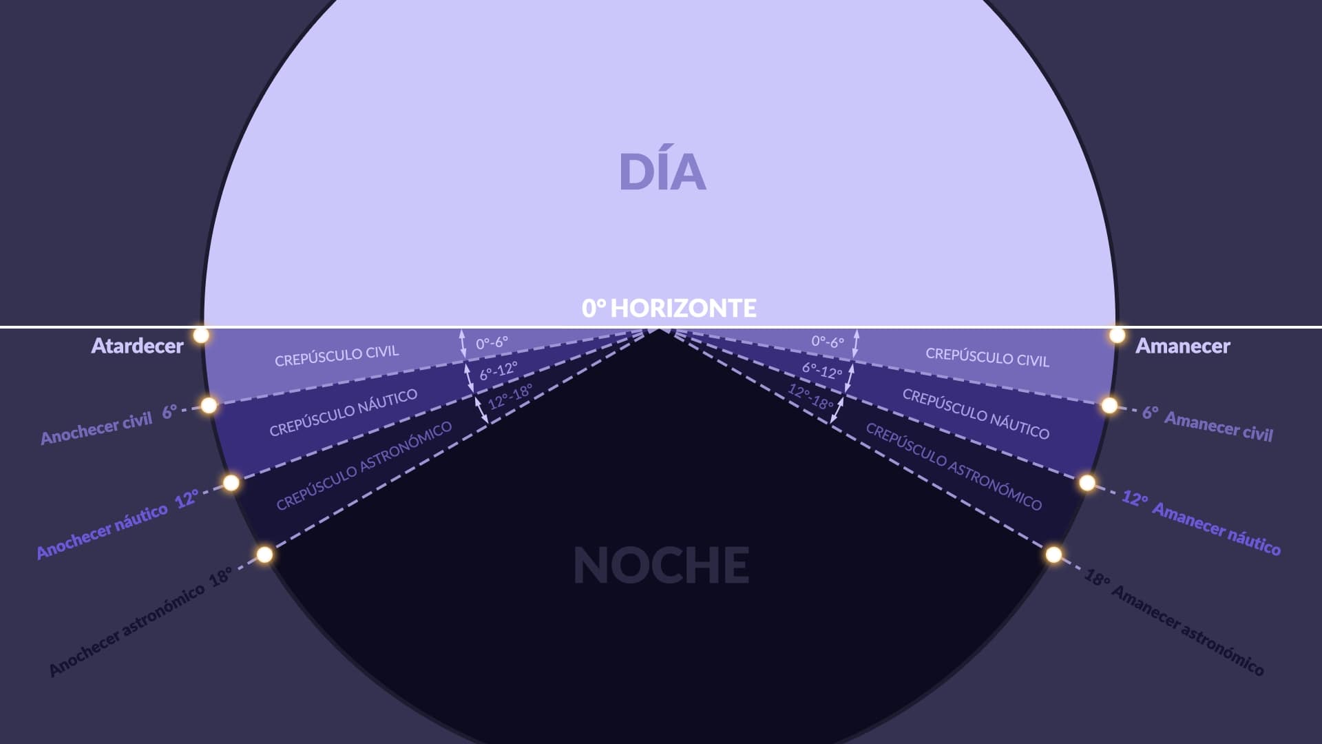 Consulta nuestra infografía sobre crepúsculo, anochecer y amanecer para una explicación visual clara.