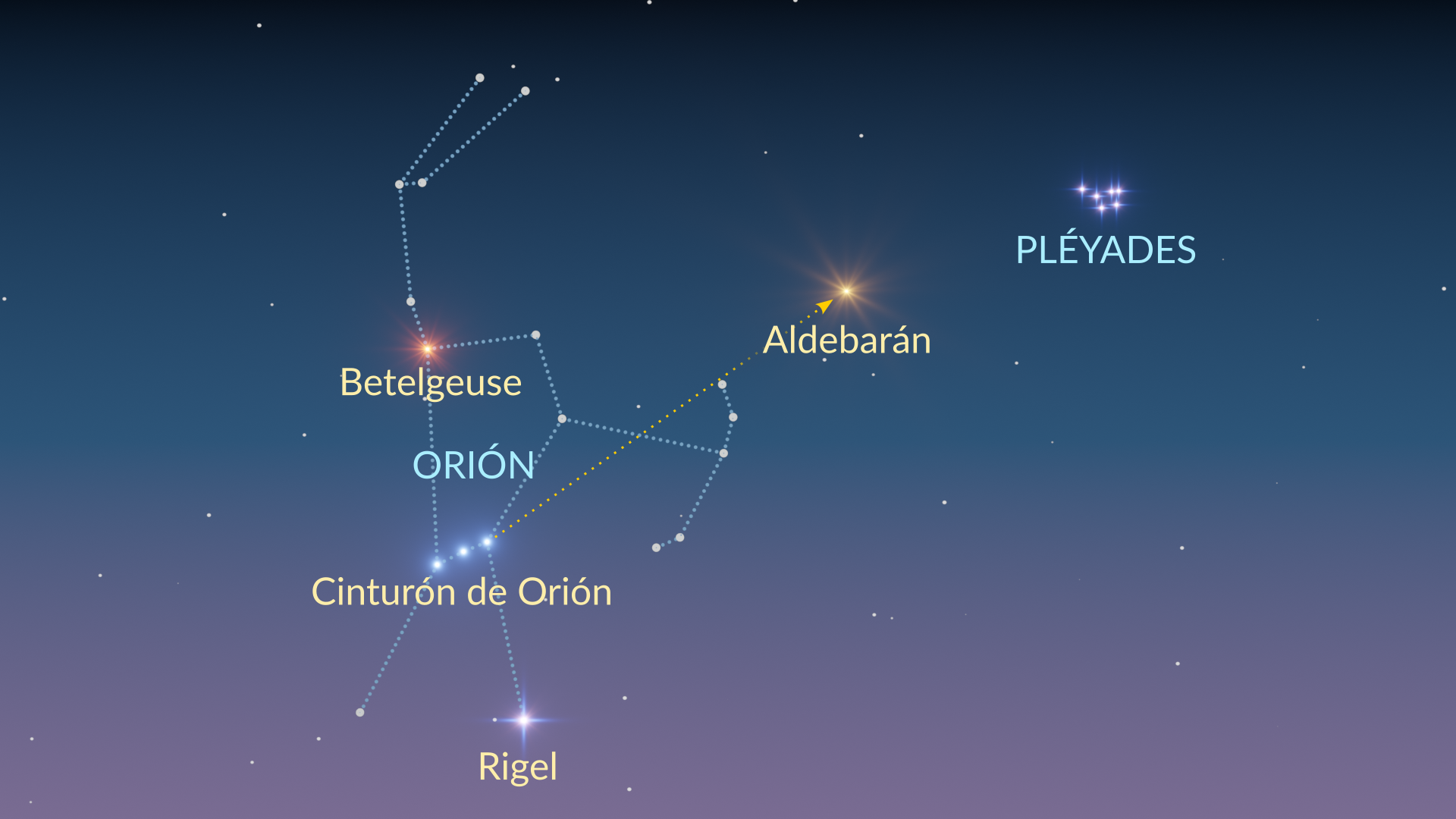 Traza una línea imaginaria a través de ellas hacia el arco de Orión.