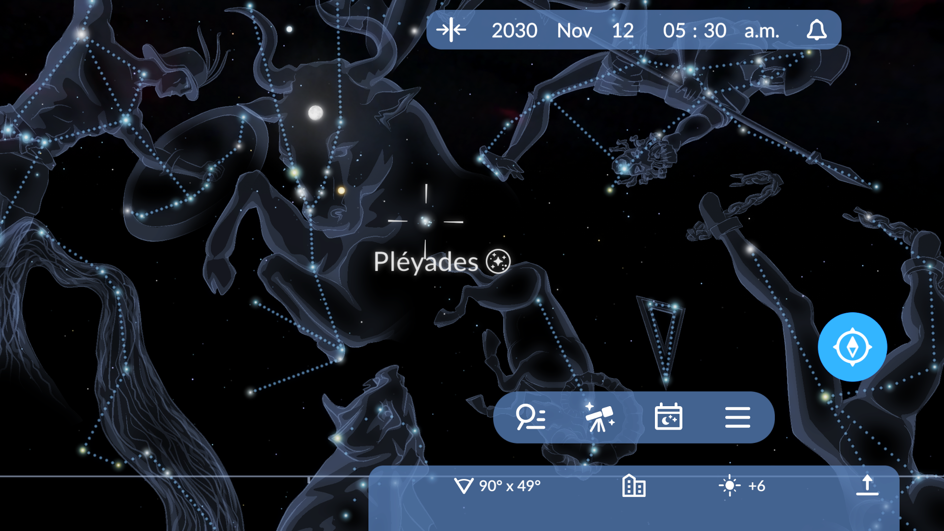 Puedes usar Sky Tonight para saber cuándo las Pléyades estarán más altas en tu cielo y planificar el encuadre junto a la Luna o las constelaciones cercanas.
