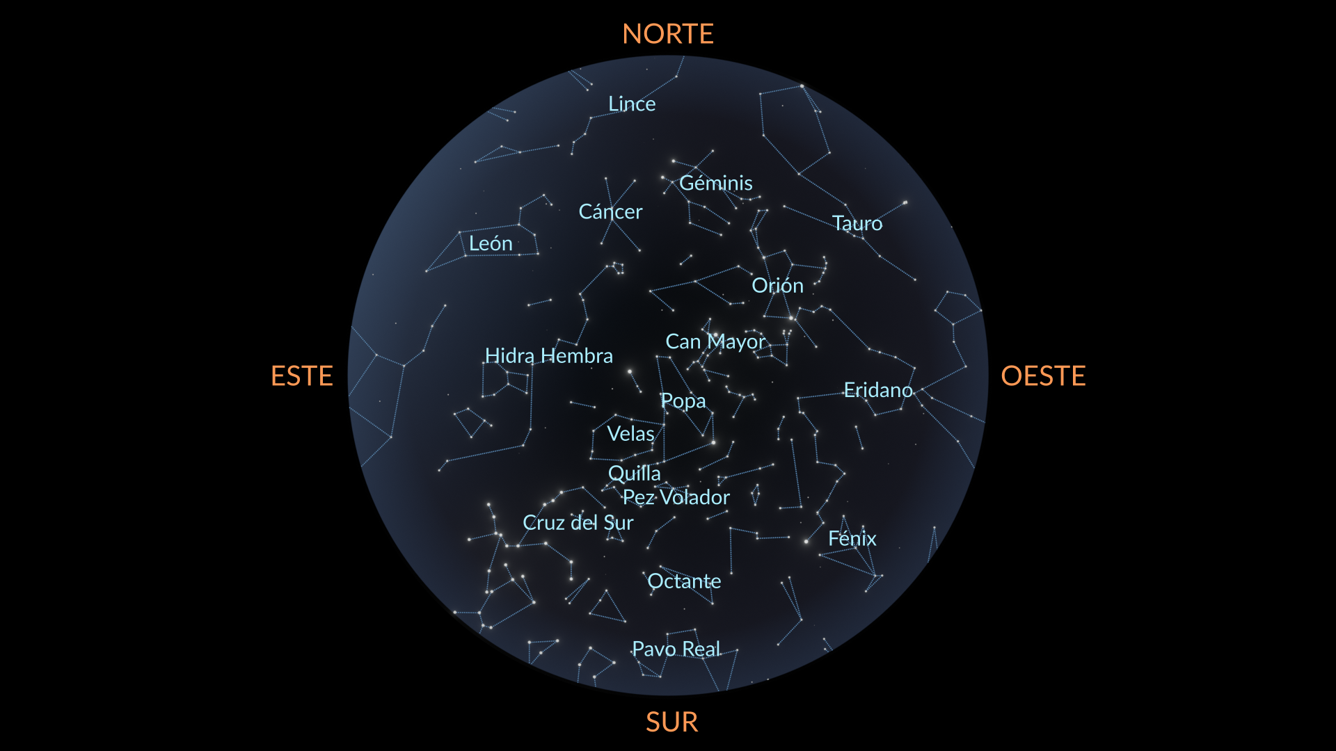 Ten en cuenta que algunas de las constelaciones listadas pueden no ser visibles desde tu ubicación. Más adelante en el artículo, daremos las latitudes desde las que son visibles.