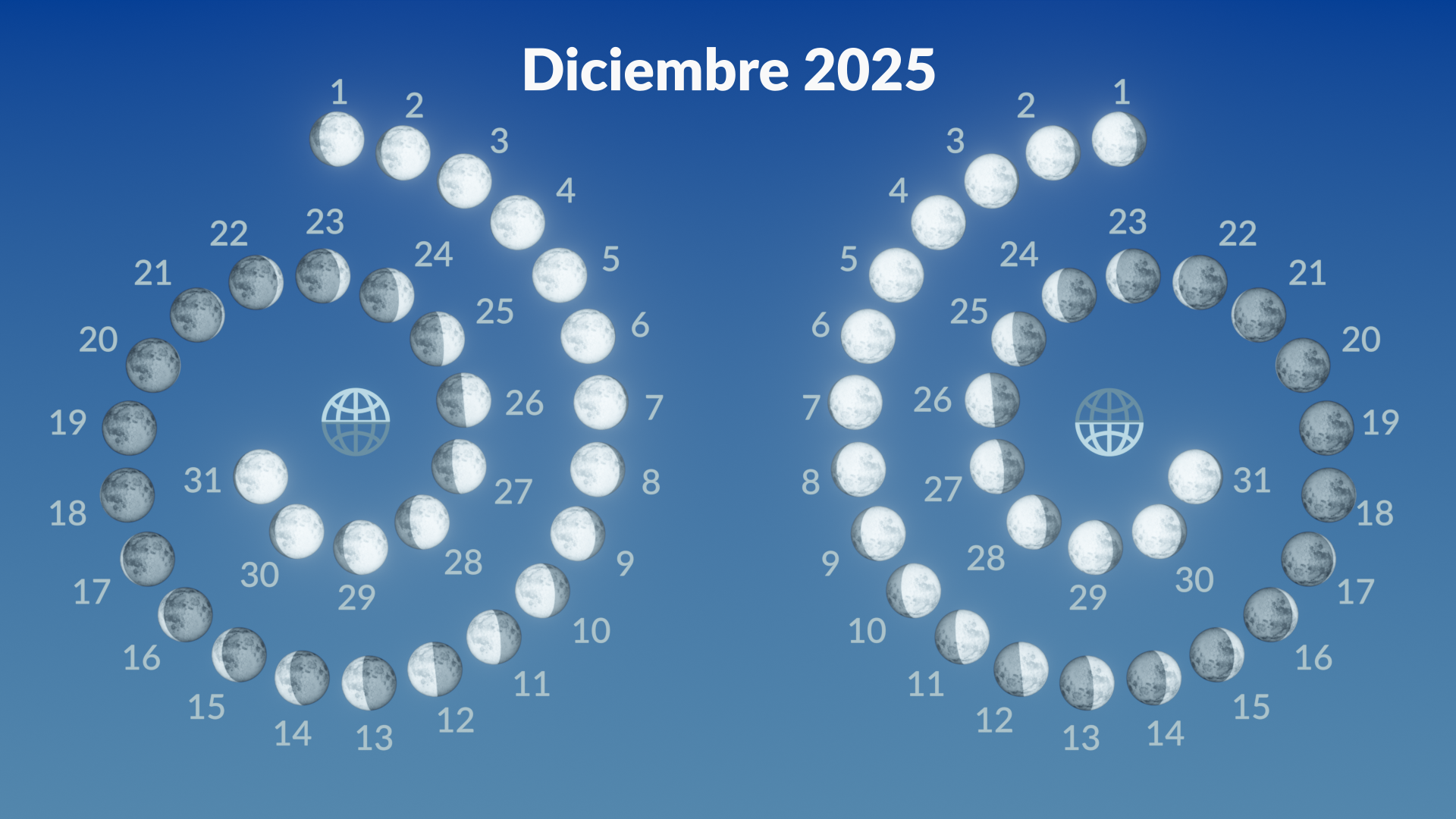 Fases de la Luna en diciembre de 2025