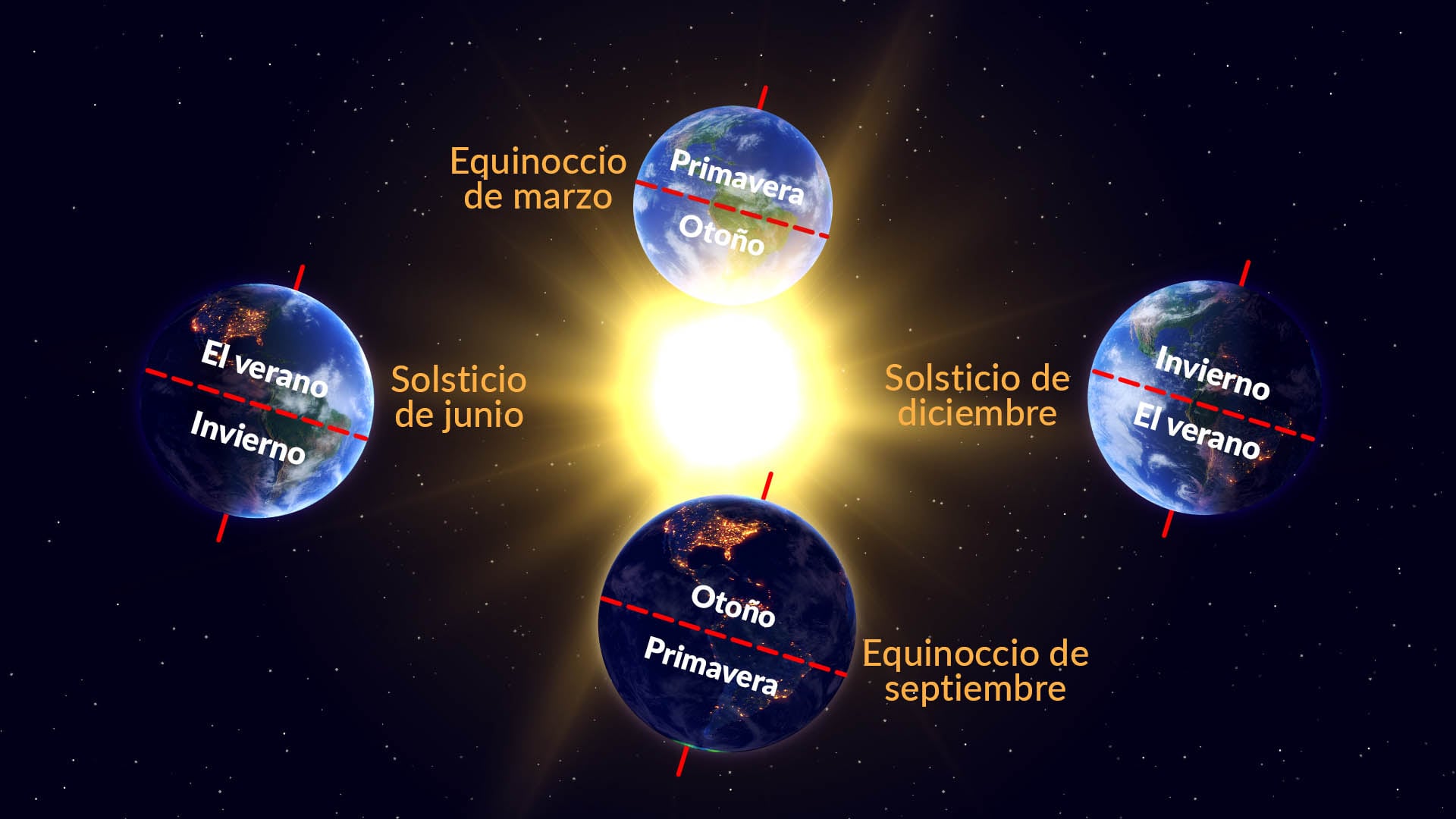 Lo contrario ocurrirá en el hemisferio sur, que estará inclinado más lejos del Sol. Allí, la gente experimentará el día más corto y la noche más larga del año — el solsticio de invierno, que trae el primer día de invierno.