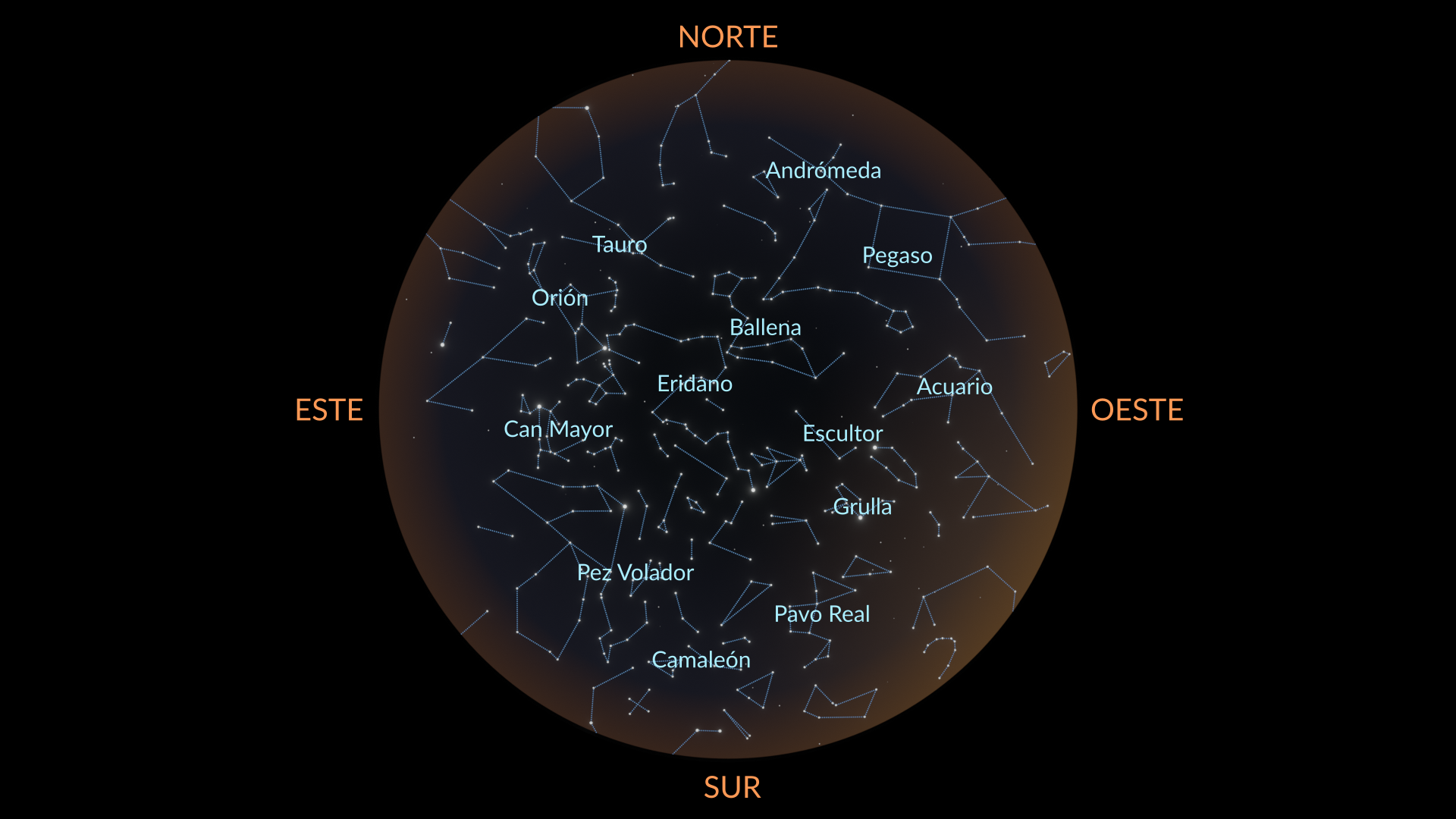 En el hemisferio sur, noviembre ofrece la oportunidad de ver varias constelaciones menores como Escultor, Fénix, Tucana y Hidrus, bien situadas en el cielo. También es el mejor momento para observar Cetus, una de las constelaciones más grandes, que se eleva alto al anochecer.