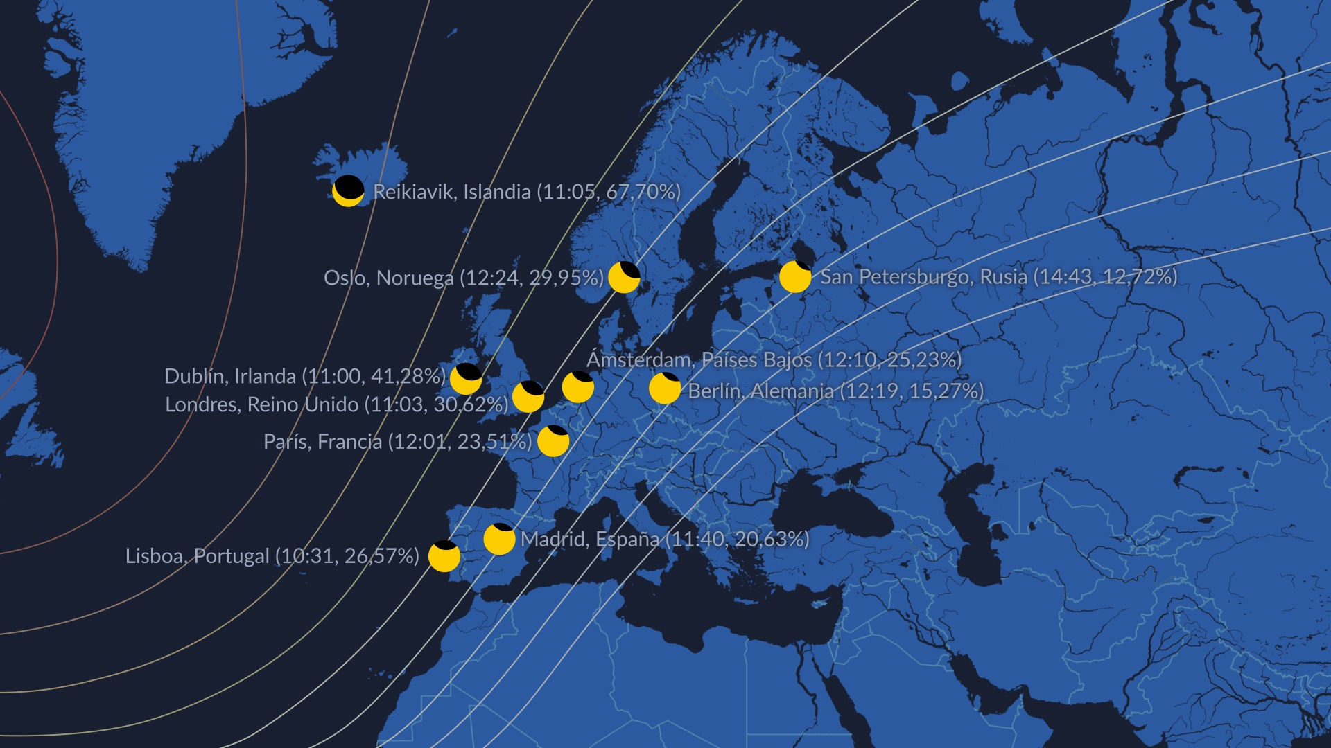 Aquí tienes una lista de las principales ciudades europeas donde se podrá ver el eclipse solar parcial en 2025: