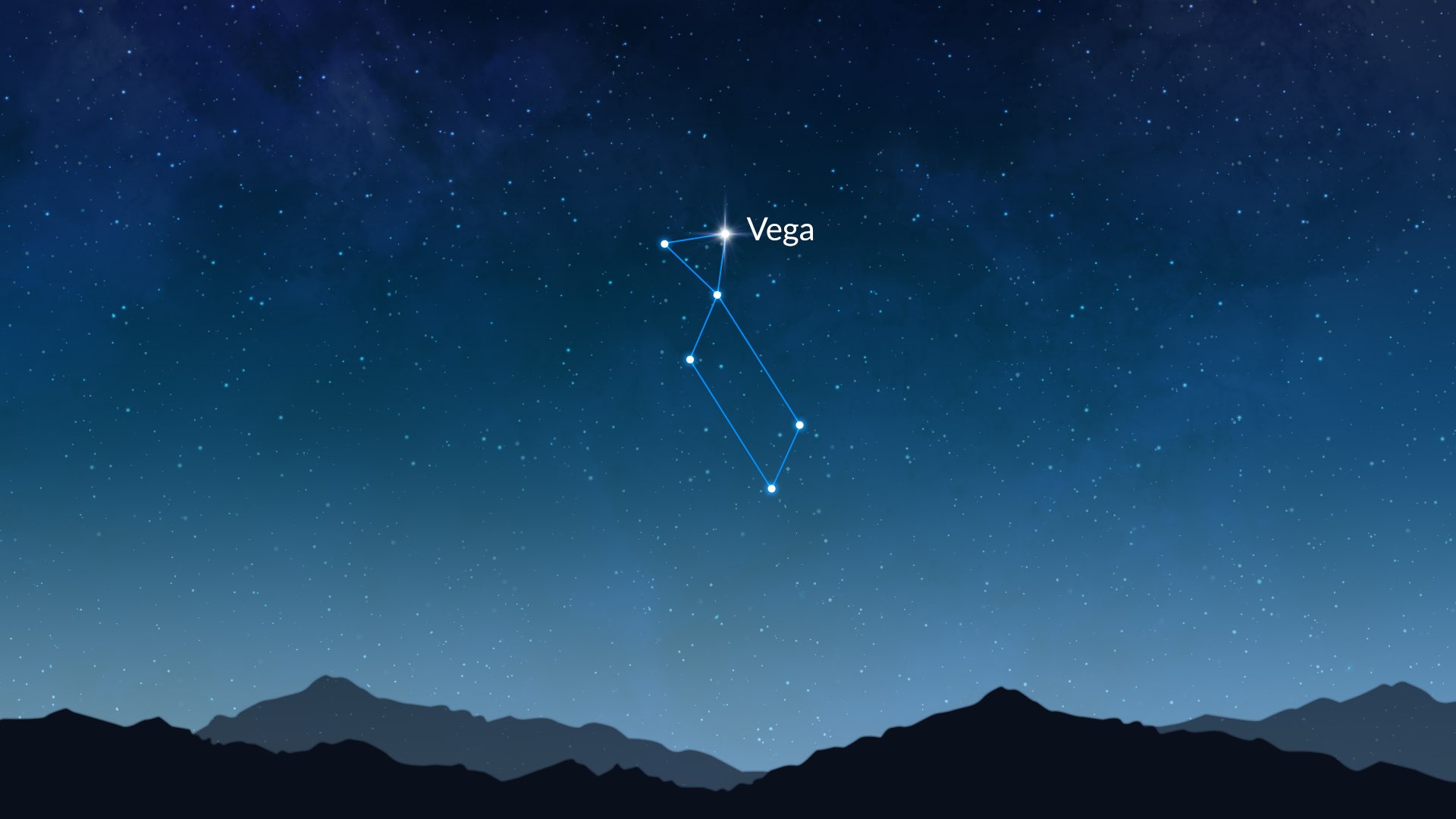 Cualquier noche de verano en el hemisferio norte, mira hacia el este para ver a la azul-blanca Vega (mag 0.03), la estrella más brillante de Lyra y del Triángulo de Verano, y la tercera estrella más brillante del hemisferio norte (después de Sirio y Arturo). ¡Es tan brillante que puede observarse incluso desde ciudades con mucha contaminación lumínica! Para asegurarte de que estás viendo Vega y no otra estrella, usa un mapa del cielo móvil (como Sky Tonight) e identifica la estrella.