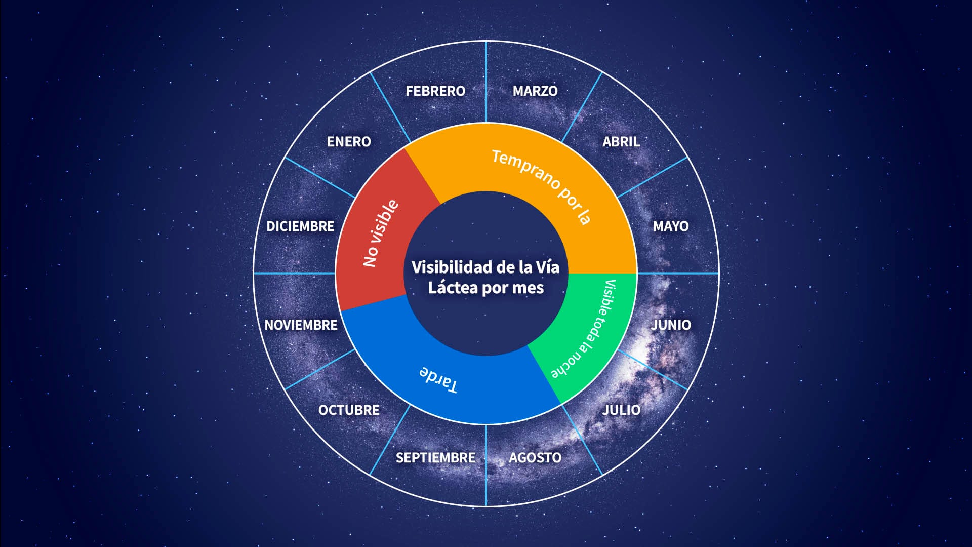 En el Hemisferio Norte, la temporada de la Vía Láctea va de marzo a octubre. En el Hemisferio Sur, dura de febrero a octubre. El Centro Galáctico se puede ver durante toda la noche en junio y julio desde ambos hemisferios.