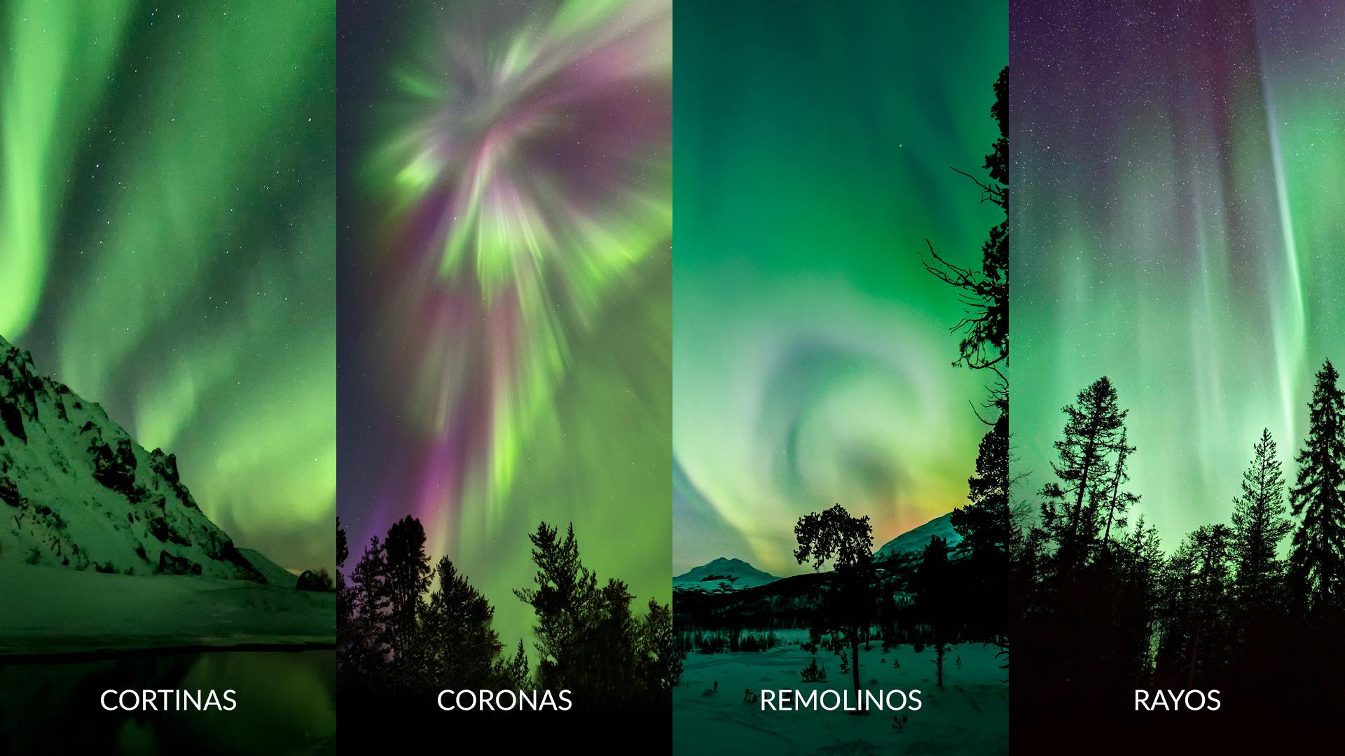 Las auroras aparecen entre los 97 y 1.000 kilómetros sobre la Tierra, formando cortinas, espirales, coronas, rayos y otras formas vibrantes. Estas formas siguen las líneas del campo magnético. Como si fuera poco, las auroras parecen “bailar”, cambiando constantemente con la rotación de la Tierra y las ráfagas de energía solar.