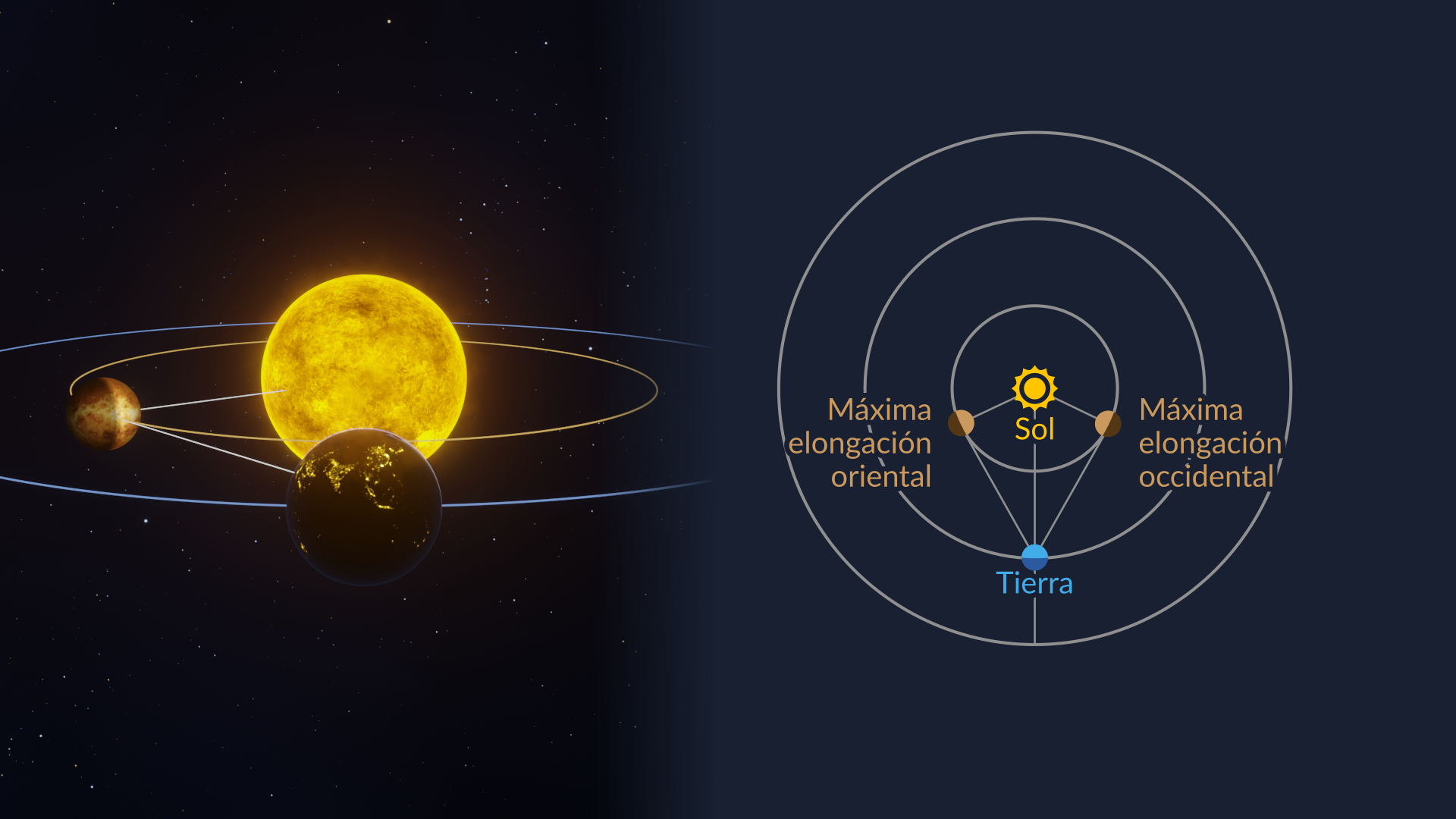 Nota de los autores: Puede que notes que aquí nos centramos más en Mercurio que en Venus. Eso se debe a que la elongación de Mercurio respecto al Sol marca una diferencia mayor en cómo (y si) puedes verlo, mientras que Venus suele ser brillante y evidente incluso fuera de sus elongaciones máximas. Pusimos a Mercurio en primer lugar no por favoritismo, sino porque es fácil pasarlo por alto, y queremos mejorar tus probabilidades de verlo. Para conocer más datos curiosos sobre este planeta, prueba Test de Mercurio: planeta pequeño, grandes sorpresas.