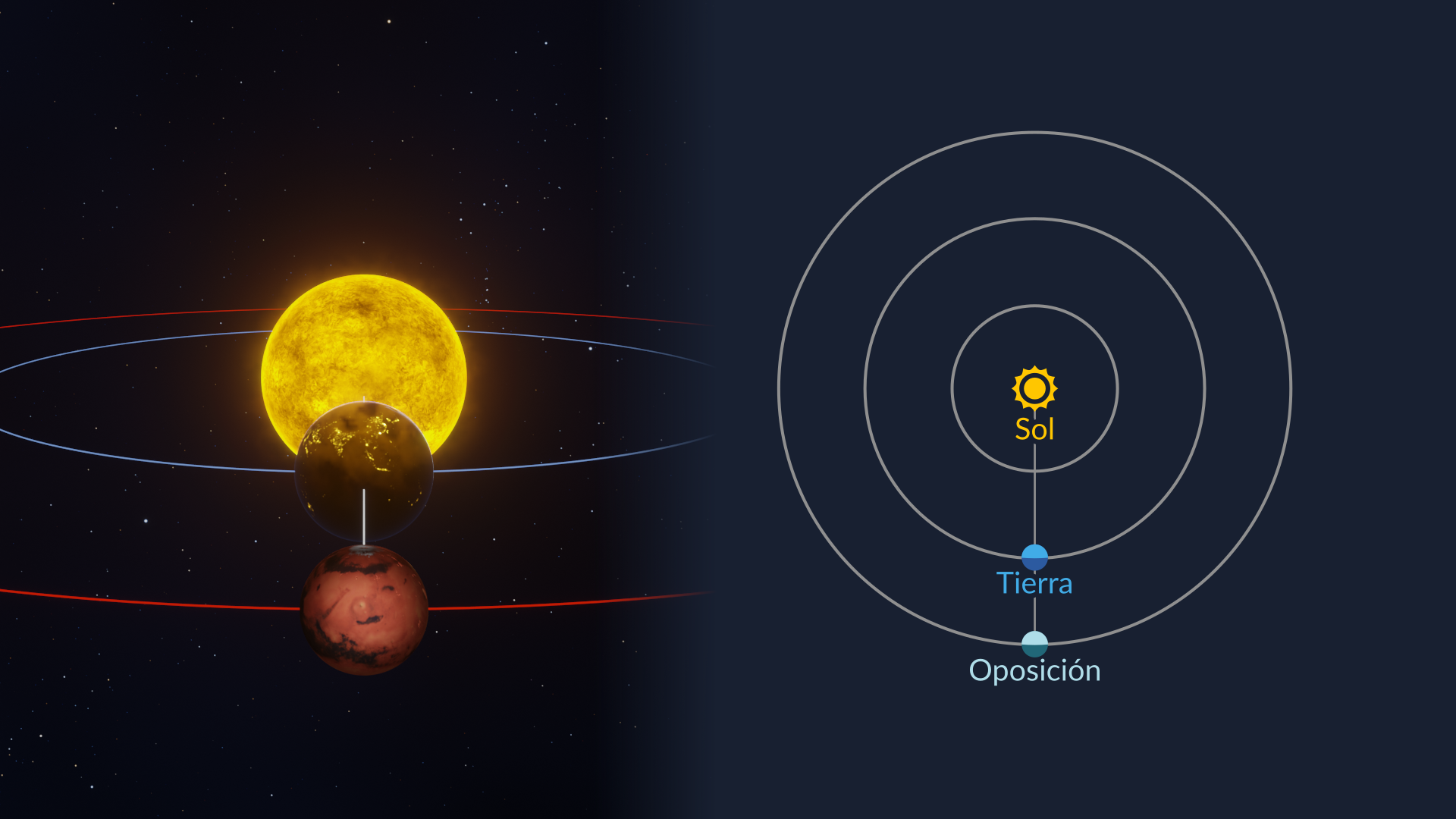 La oposición es una alineación celeste en la que el objeto tiene una elongación de 180 grados, que es la máxima elongación de los planetas superiores. Durante la oposición, el objeto y el Sol se sitúan en lados opuestos de la Tierra, por lo que el objeto queda completamente iluminado por la luz solar y es visible durante toda la noche. La oposición se considera el mejor momento para observar un cuerpo celeste. En el artículo dedicado, tenemos una lista de cuerpos celestes — planetas, planetas enanos y asteroides — que alcanzarán la oposición próximamente.