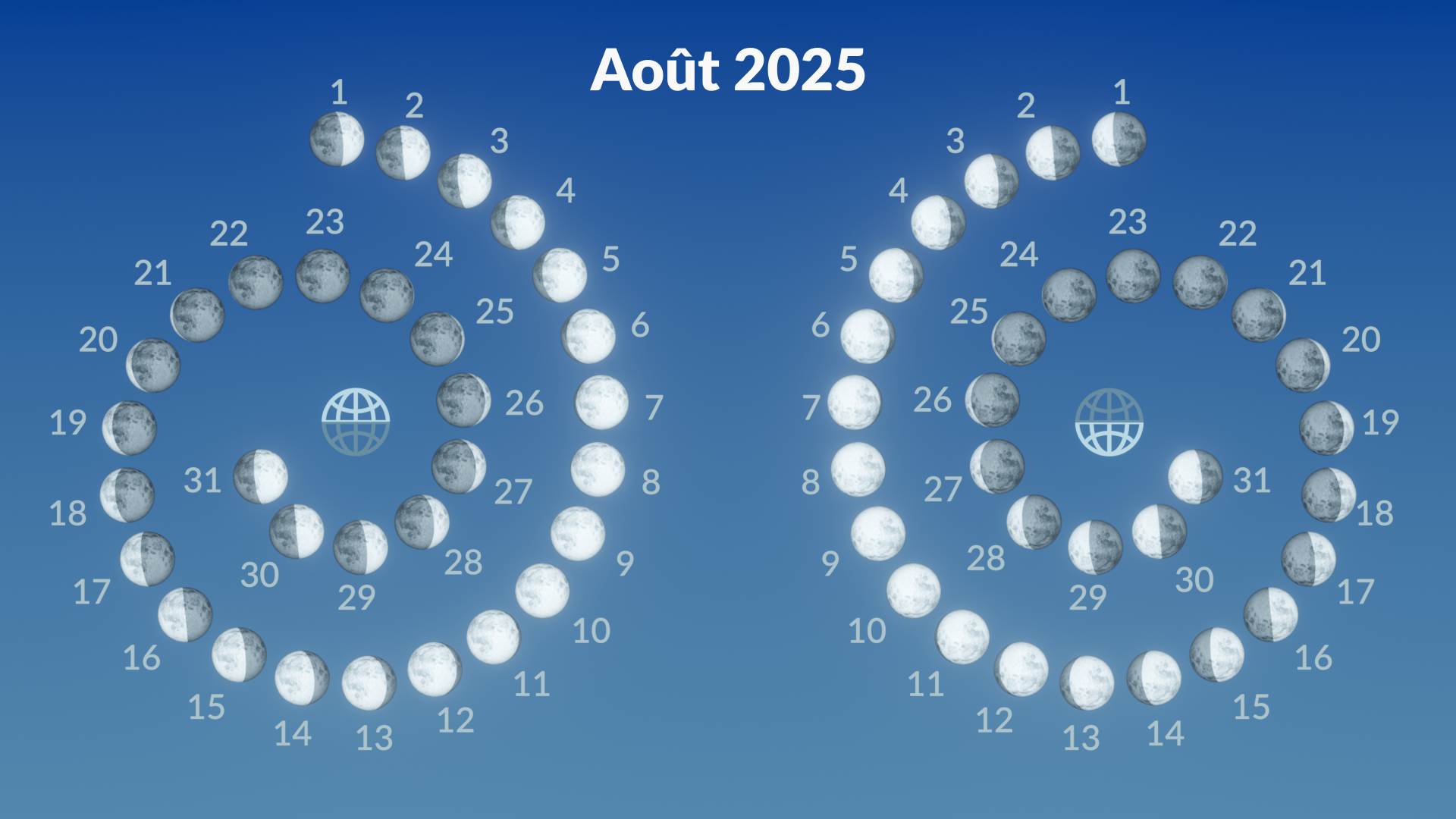 Voici les phases lunaires prévues pour le mois d’août 2025 :