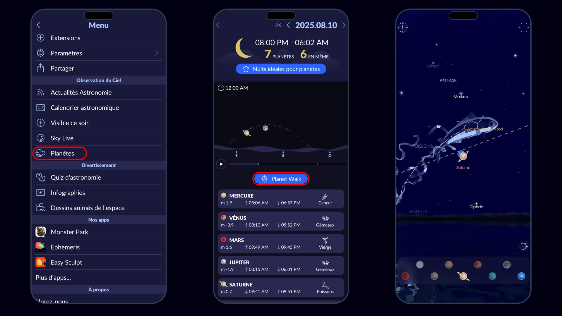 Ouvrez l’application et rendez-vous dans la section « Planets » du Menu.