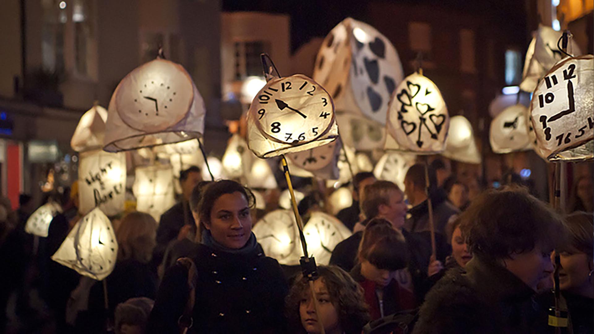 Burning the Clocks est une célébration basée sur une procession de lanternes et de costumes fabriqués à partir de cannes de saule et de papier de soie blanc. La procession s'achève par un feu de lanternes accompagné de feux d'artifice. Ce festival a été créé comme « un antidote aux excès du Noël commercial »