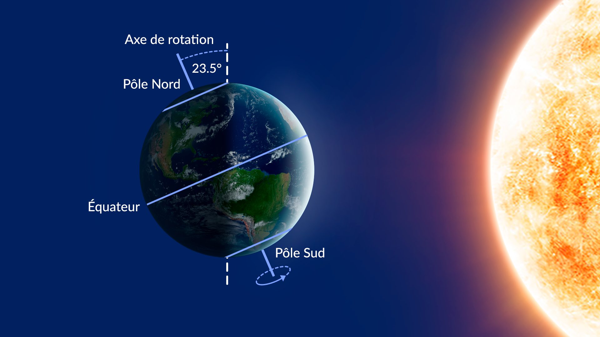 Les solstices se produisent parce que l'axe de notre planète est incliné de 23,5 degrés. Si la Terre n'avait aucune inclinaison, le Soleil brillerait directement sur l'équateur toute l'année. Il n'y aurait ni solstices ni saisons. Regardez cette vidéo pour obtenir une explication visuelle du fonctionnement de l'inclinaison de la Terre.