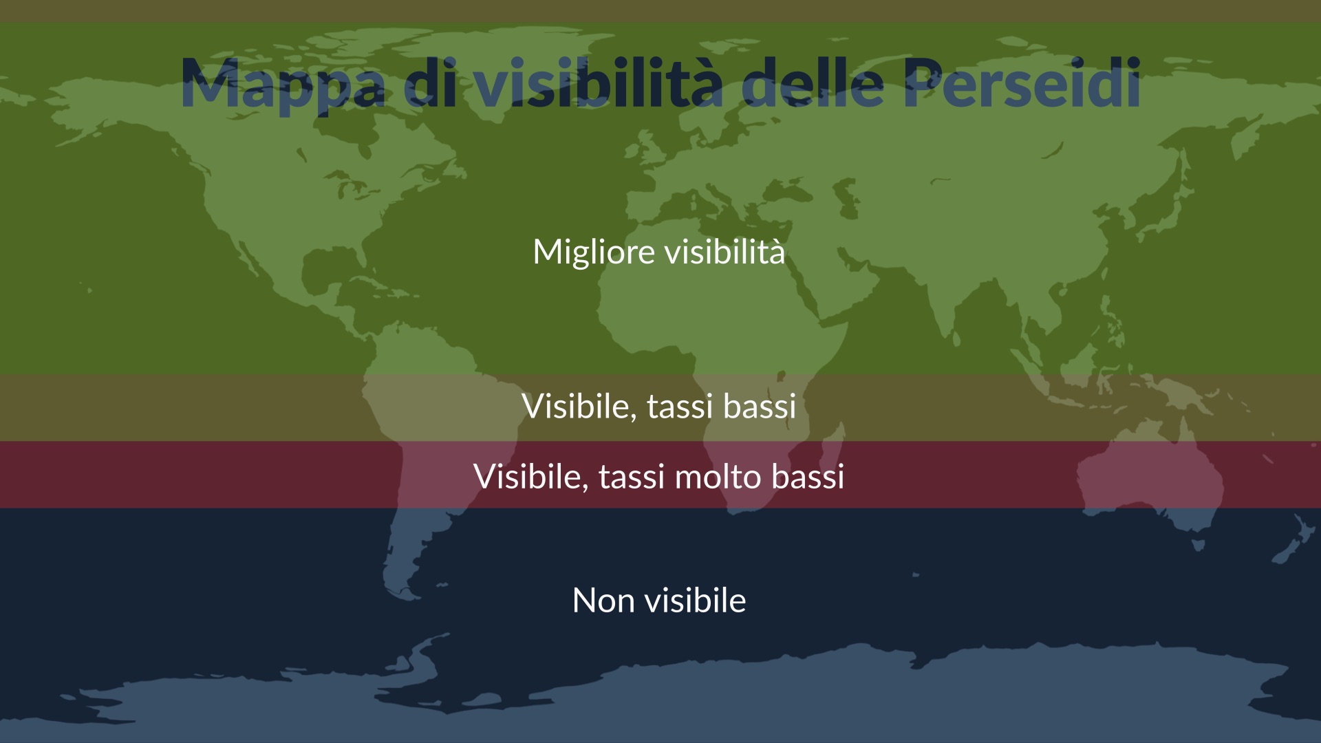 I Perseidi sono meglio osservabili alle latitudini medie settentrionali. Lì, il radiante della pioggia di meteoriti si alza alto nel cielo intorno alle 22:30, ora locale. Purtroppo, la pioggia di meteore delle Perseidi non è ben visibile dalla maggior parte dell’emisfero australe.