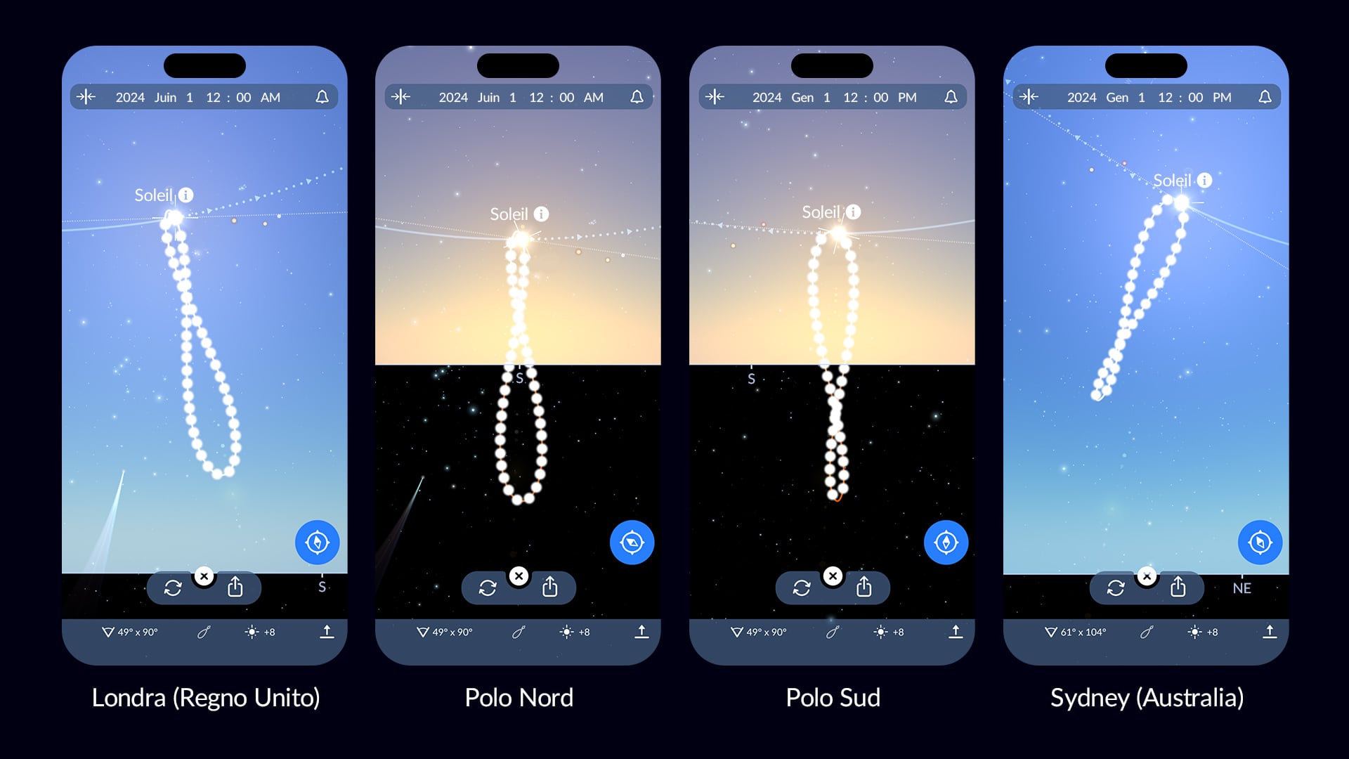 - Individua il Sole sulla mappa del cielo e toccalo;