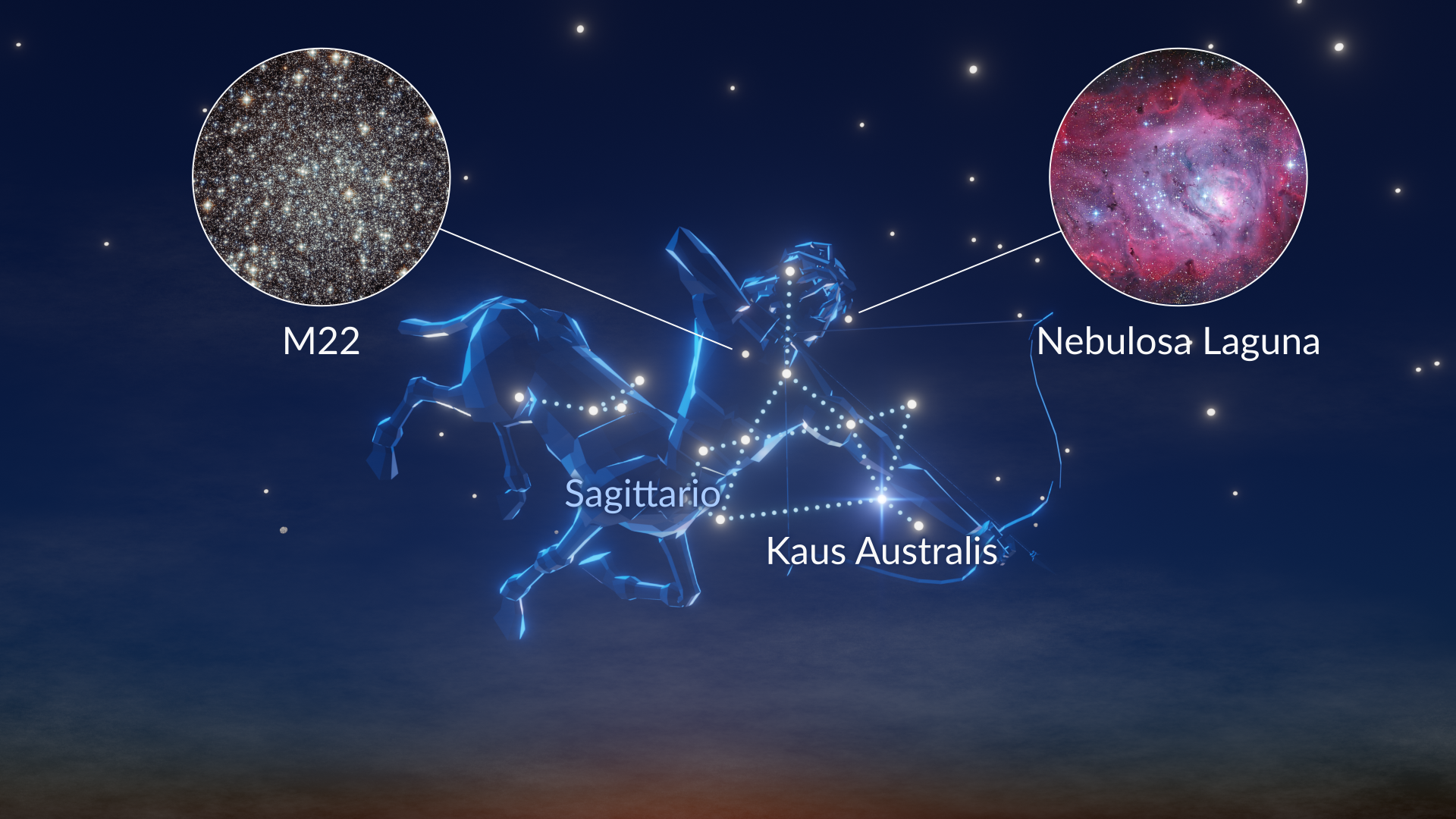 - Migliori oggetti del cielo profondo: Nebulosa Laguna (mag 4.6), Grande Ammasso del Sagittario (mag 5.1)