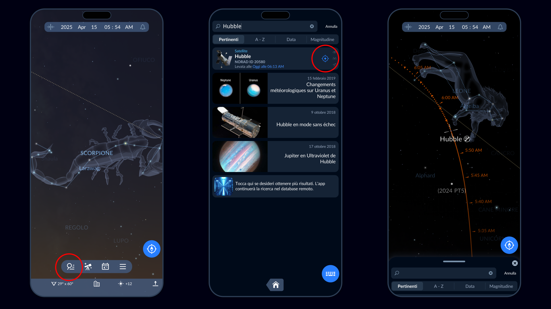Sì, con le giuste condizioni, Hubble può essere visibile anche a occhio nudo! Se passa abbastanza vicino sopra di noi in una notte limpida e buia, apparirà come un puntino luminoso che attraversa velocemente il cielo. Può raggiungere una magnitudine di 0,5, quasi brillante quanto Betelgeuse in Orione, Achernar nella costellazione di Eridano o il pianeta Saturno. Per seguire i movimenti di Hubble, prova l’app Sky Tonight, dove puoi trovare informazioni aggiornate in tempo reale per osservare il telescopio spaziale.
