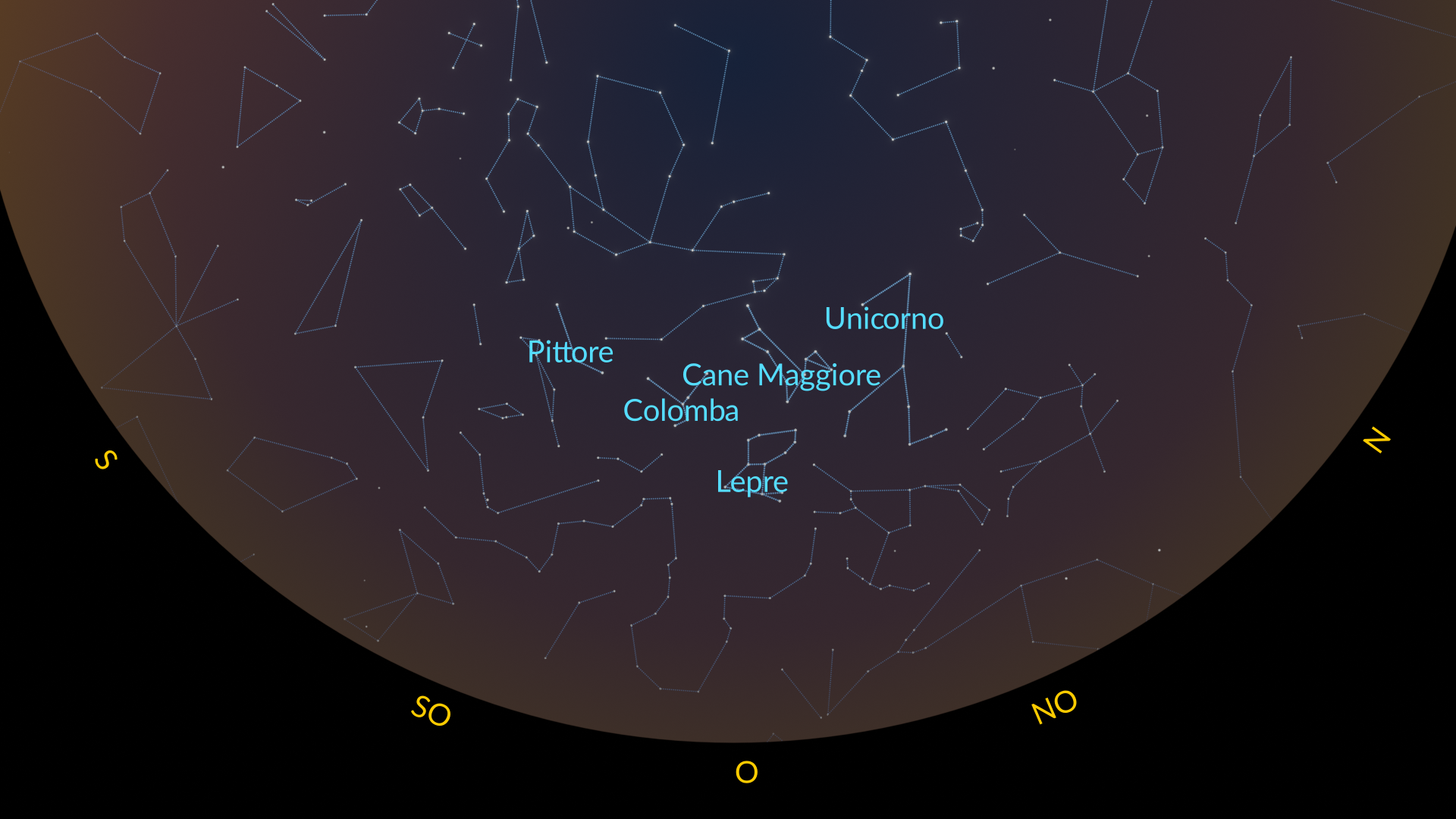 Le migliori costellazioni da osservare nell’emisfero sud a febbraio includono Cane Maggiore, Lepre, Colomba, Unicorno e Pittore.
