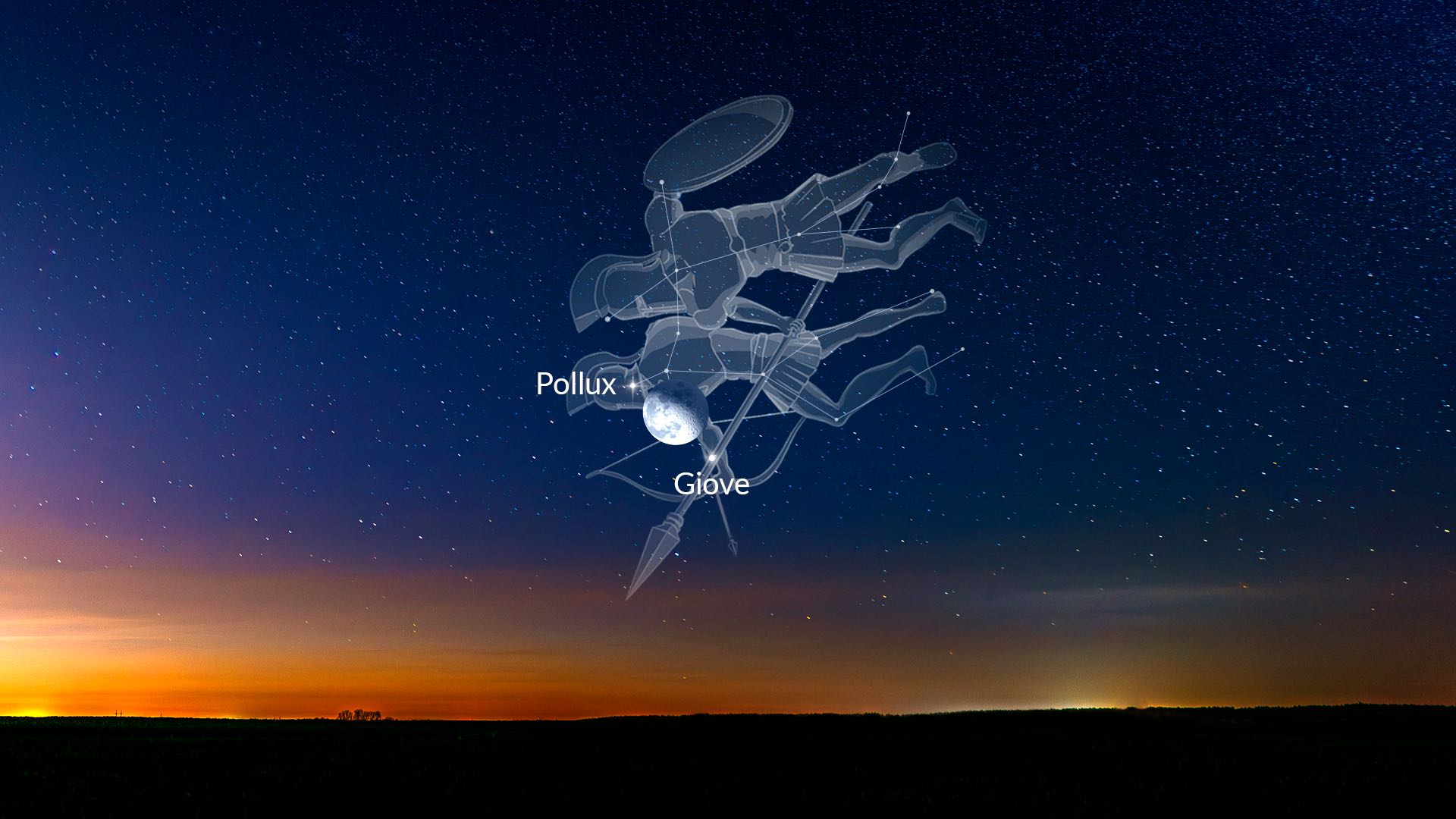 La notte del 10 novembre, la Luna gibbosa calante passerà vicino a Giove (mag -2.4) nella costellazione dei Gemelli. Guardando poco più a nord, vedrai le famose stelle gemelle Castore e Polluce, che rappresentano le teste dei Gemelli — Polluce è la più brillante delle due. Anche l’ammasso aperto dell’Alveare (M44) sarà nella stessa area del cielo (a circa 13° di distanza), ma la forte luminosità della Luna ne renderà difficile la visione senza telescopio. Il gruppo salirà nel corso della notte e rimarrà visibile fino all’alba. Inizia a cercarli sull’orizzonte orientale a partire dalla sera: raggiungeranno il punto più alto nel cielo intorno alle 4 del mattino, ora locale.