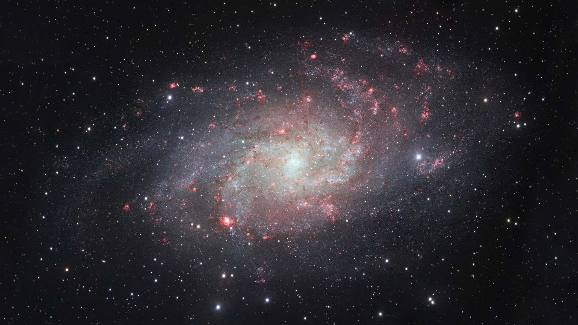 - Descrizione: La Galassia del Triangolo è una galassia a spirale situata a 2,7 milioni di anni luce dalla Terra. Il suo nome deriva non dalla forma della galassia, ma dalla costellazione Triangolo, dove è possibile osservarla. M33 è il terzo membro più grande del Gruppo Locale di galassie, dopo la Galassia di Andromeda e la nostra Via Lattea.