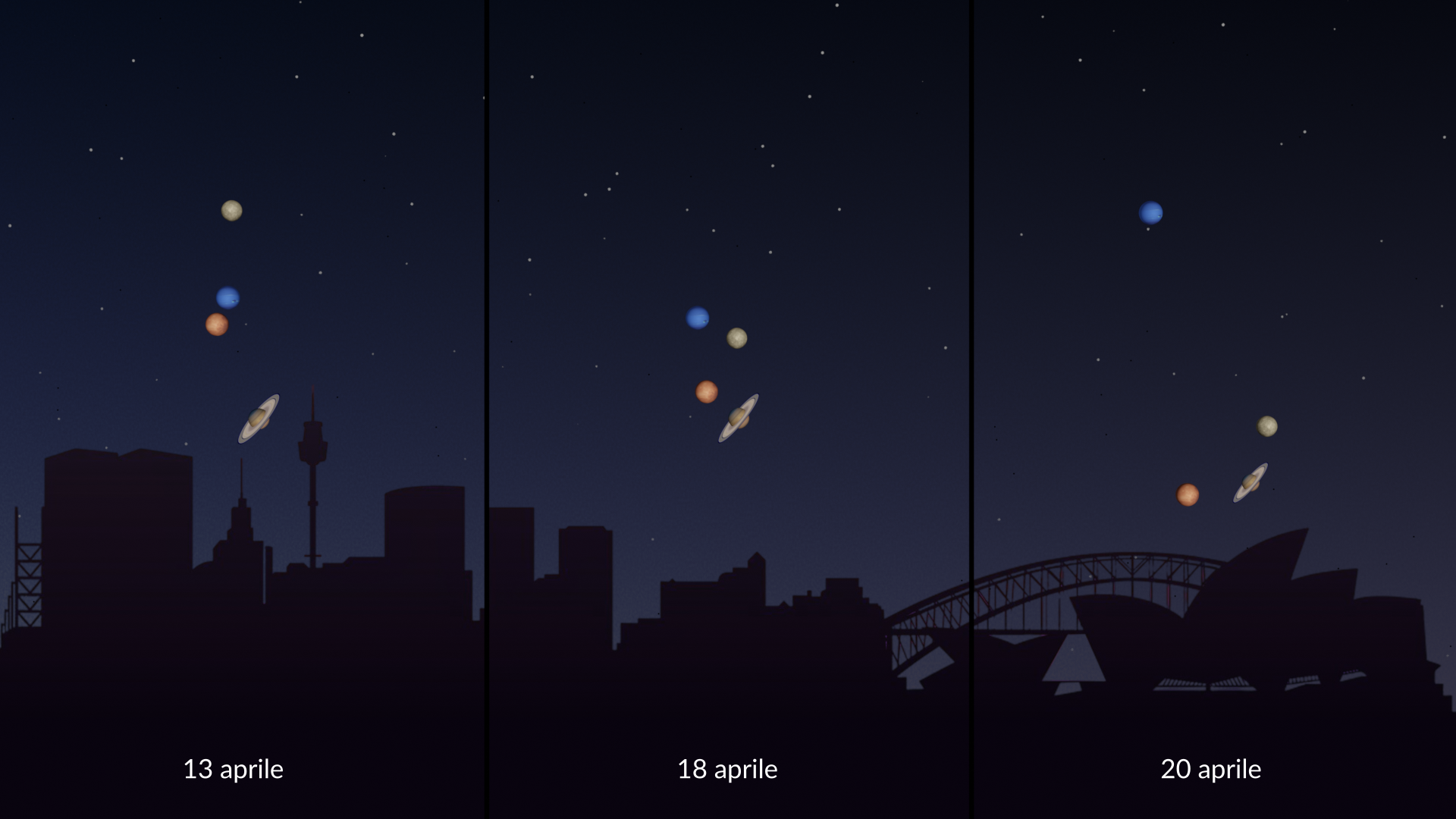 La congiunzione successiva avverrà il 20 aprile, quando Marte e Saturno appariranno vicini nel cielo del mattino, bassi sull’orizzonte orientale. Marte e Saturno saranno visibili a occhio nudo. Anche Mercurio sarà visibile nelle vicinanze, mentre per osservare Nettuno sarà necessario un telescopio. Usa l’app gratuita Sky Tonight per individuare i pianeti e scoprire altri eventi astronomici.
