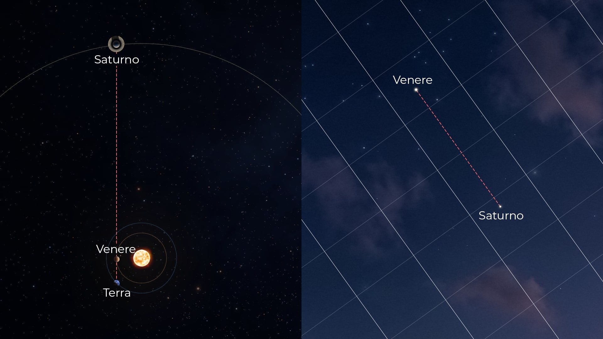 In parole semplici, una congiunzione planetaria si verifica quando due o più pianeti appaiono vicini l'uno all'altro nel cielo. Tale vicinanza di pianeti è un'illusione ottica: in realtà, sono molto lontani l'uno dall'altro.