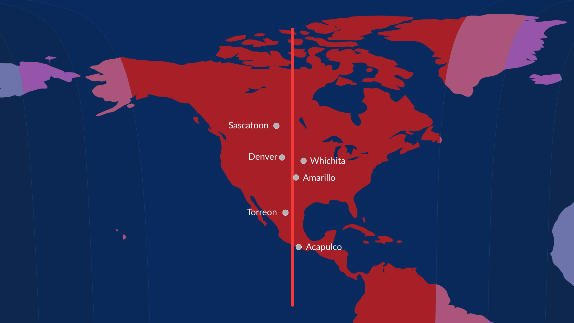 La linea rossa sulla mappa qui sotto mostra dove l’eclissi raggiungerà il picco intorno a mezzanotte il 13-14 marzo (la linea indica la Luna sul meridiano al massimo dell’eclissi).