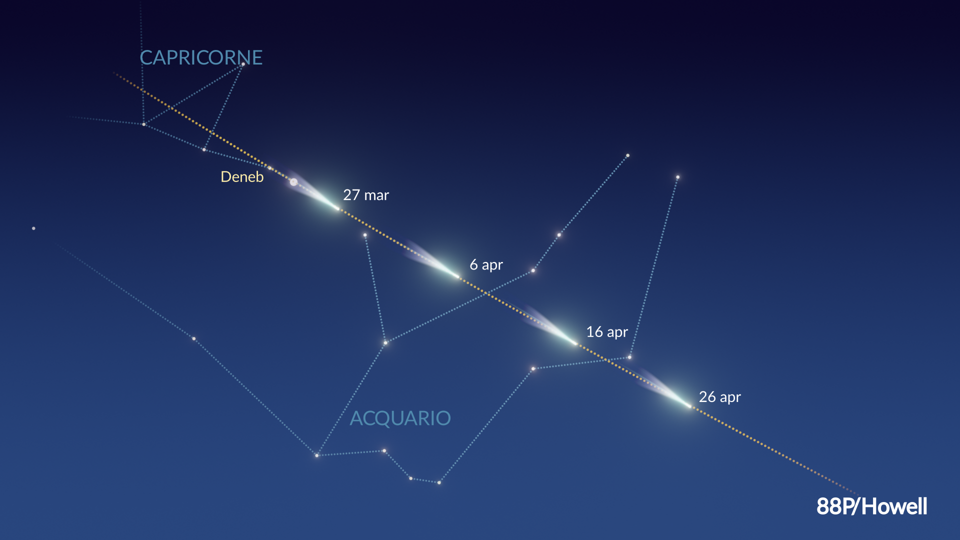 - Cometa da metà febbraio ad aprile 2026: 88P/Howell